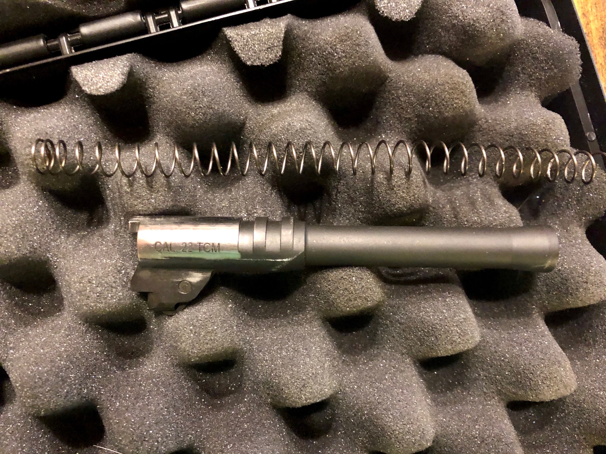 Gun started as a stock FS 9mm/22TCM and about the only things left stock are the frame, barrel, and slide. Upgrade list below. Comes with both the 9mm and 22TCM barrel (and springs) of course. While all mags in the pic will come with, I could never get mag extensions to function reliably and after dropping countless dollars trying to do so, discovered that STI gen 2 mags (only like $45/ea) run great so that's what I was using. Note that stock mags won't fit with the magwell installed, but of course that can be removed. You will need to buy STI mags, or get the ones included functioning (others have succeeded where I failed). Comes with both sets of aftermarket grips (gray for use w/magwell, tan/black for use without).