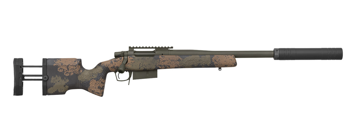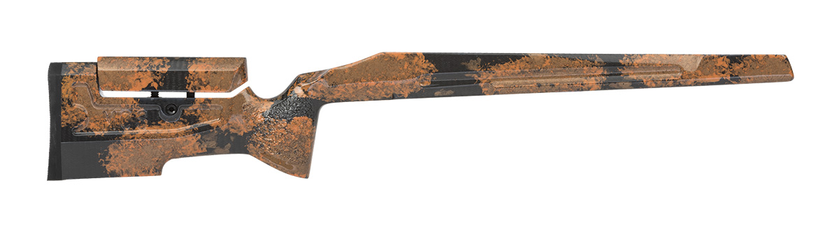 Manners Composite Stocks is proud to introduce the new MCS-DBMTK mini chassis systems. It has the same basic features as our standard MCS-DBM Gen2 mini chassis but is designed to work with all Tikka actions chambered in short calibers. When combined with one of our bulletproof stocks we consider this a true bolt in and go system It comes standard with a precision ground stainless recoil lug and a AI style 5 round magazine. It features a low-profile ambidextrous mag release and an extended mag well. Also we are offering this in a CTR version called the MCS-CTRTk mini chassis, it has all the same features but is designed to use your factory ctr bottom metal and mags. To fit these new mini chassis we are rolling out two new stocks made just for these systems. First - a special high tang version of our MCS-PRS1 stock designated MCS-PRS1TK, Second - a version of the MCS-EH1 stock designated MCS-EH1TK. ( shown below in new prs1tk stock in scorched-earth camo pattern - designed to show 70% carbon fiber then 15-15 of colors )
