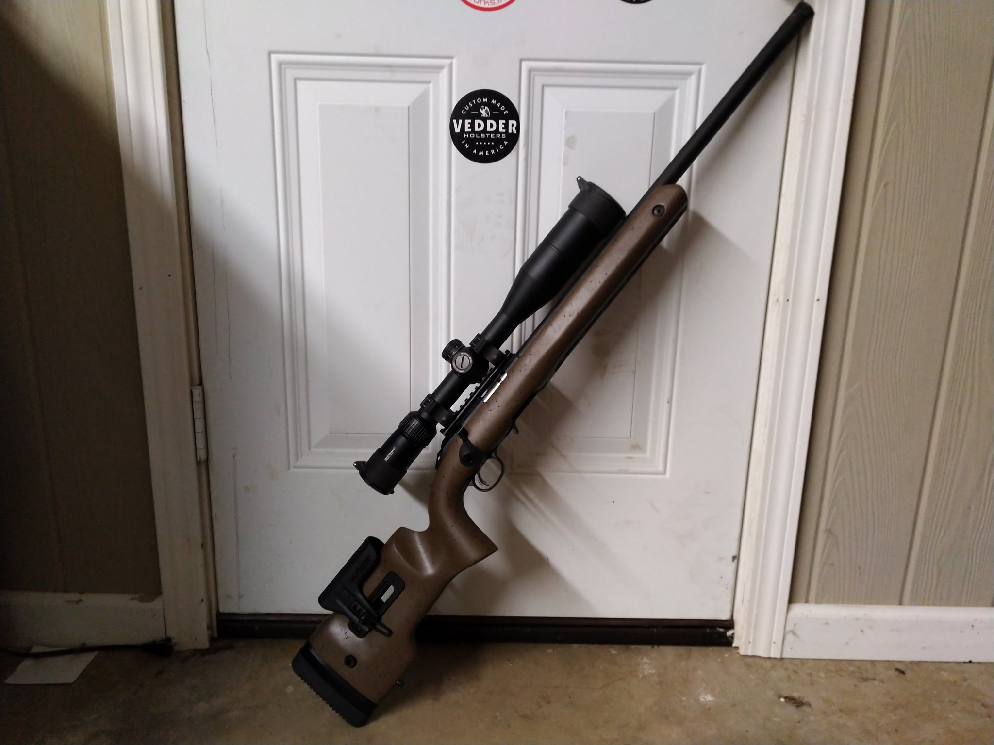 It has an old PA 4-14 FFP mil/mil on it and a 20moa rail. It has spanked some nice rifles a few times. It certainly isn’t a top level rifle, my Kidd is better, but it is definitely worth and performs better than my investment. I have always enjoyed working with an underdog and having it do well.