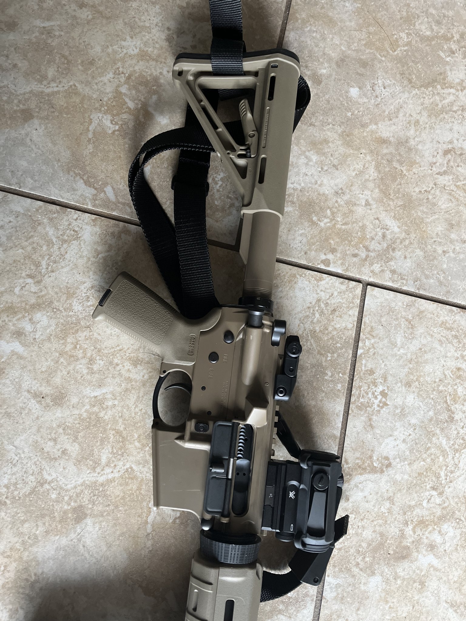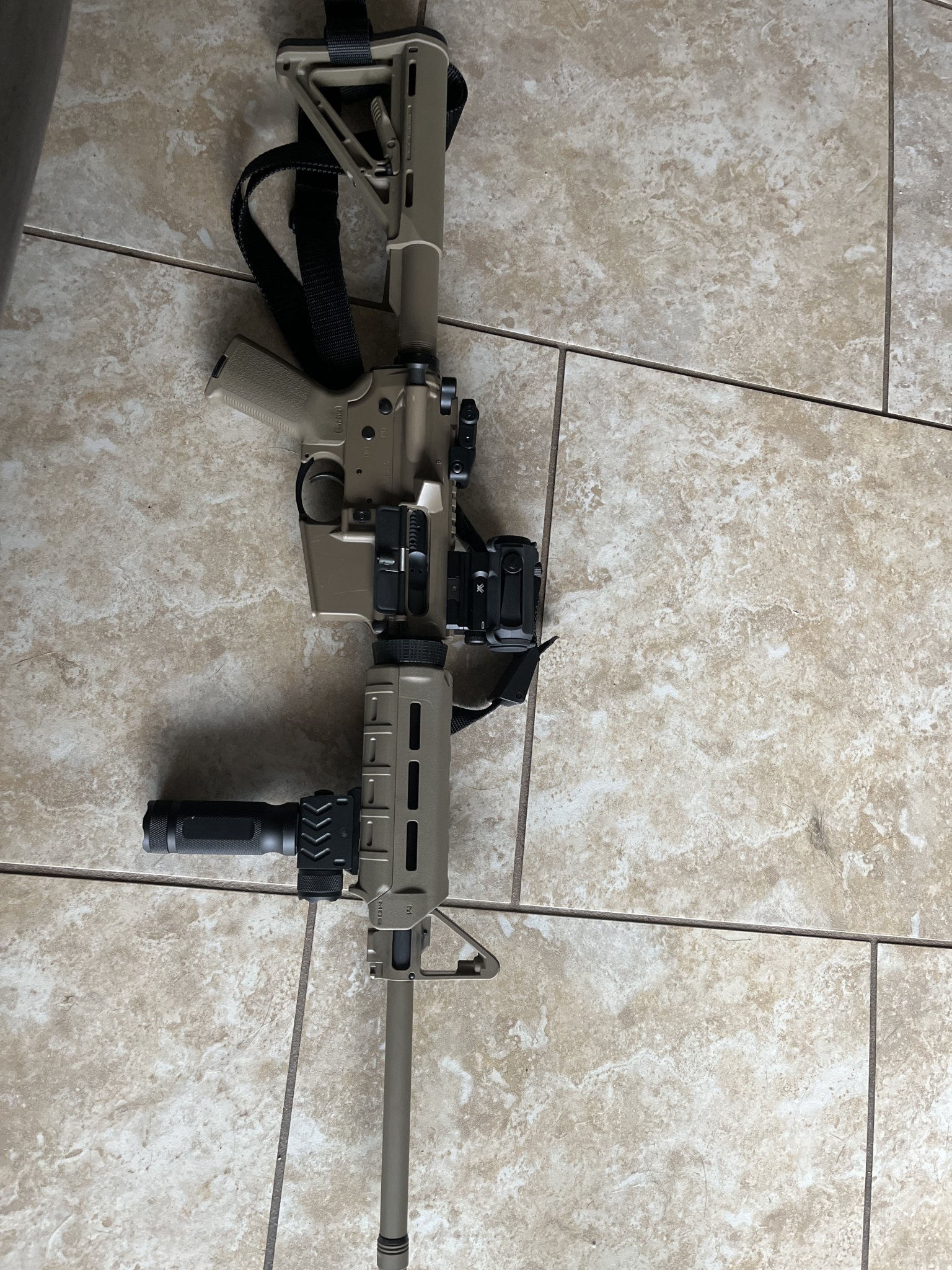 RUGER AR 5.56 with Magpul furniture and upgrades. Flip up sights. Red dot Sparc AR Vortex. Flashlight foregrip. Sling as well. Asking for 900. Pay pal f&f Zelle. Shipped to FFL.