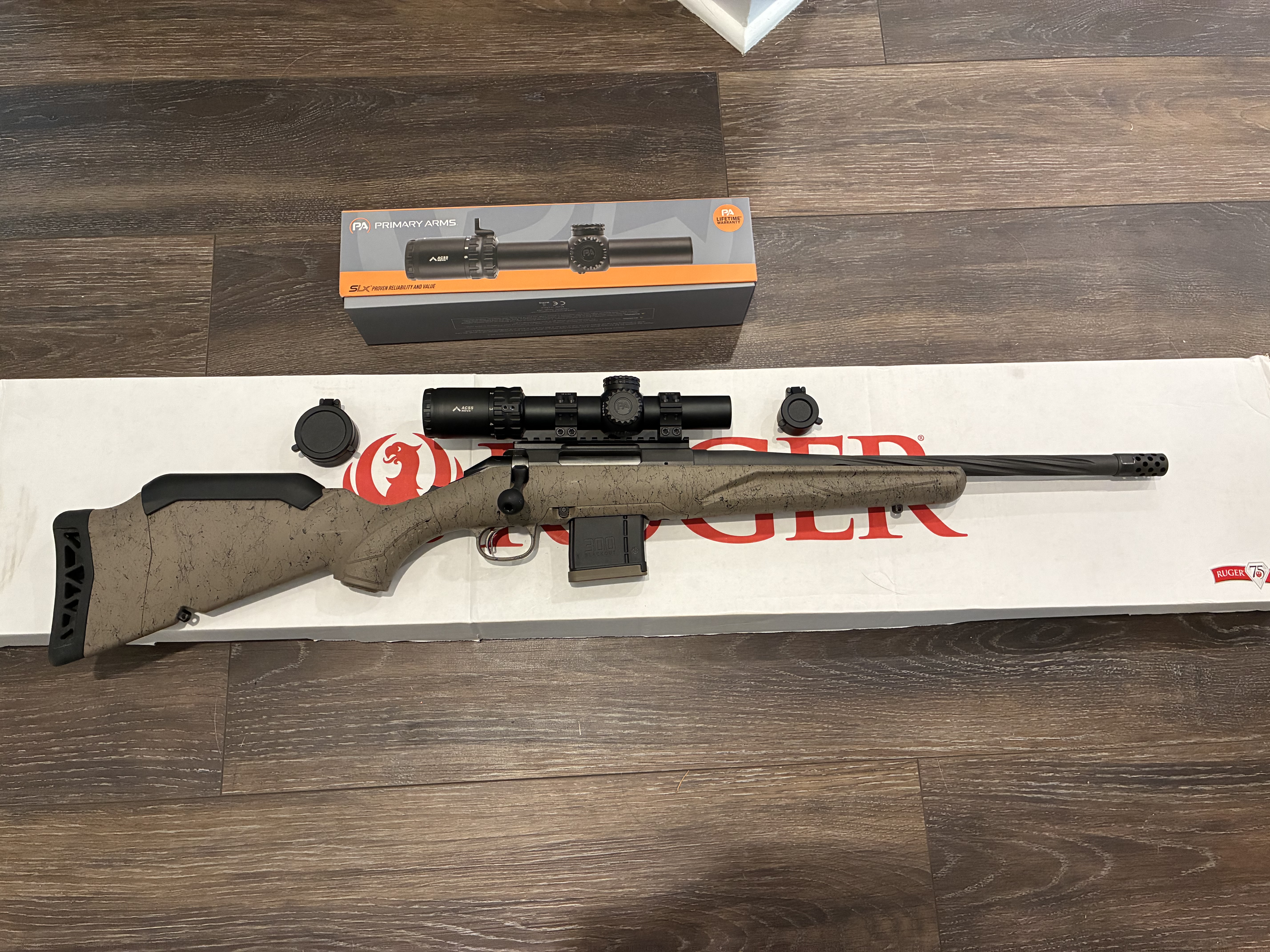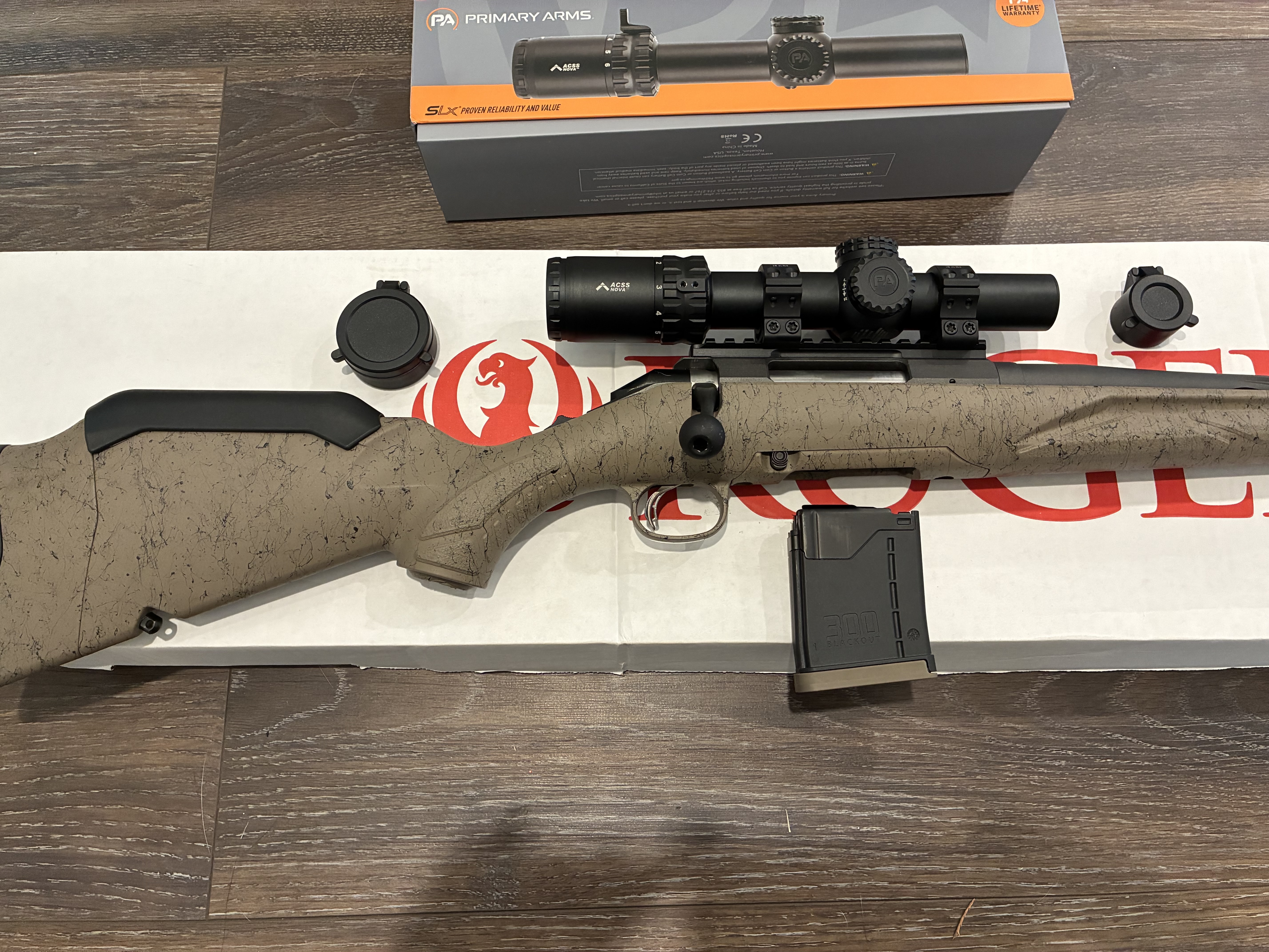 Ruger American Ranch Gen II 300 BLK with Primary Arms SLX Nova Gen 4 1-6 in Vortex Pro Series rings. Still have original box and everything for both the rifle and scope.
