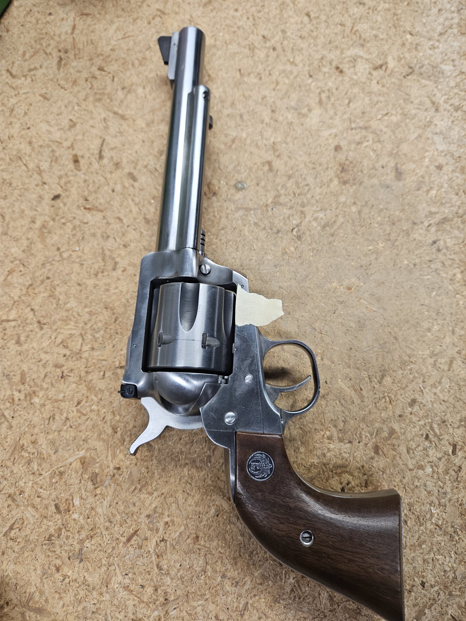 Up for sale, clean and reliable, ruger new model Blackhawk in 357 mag. Stainless with walnut factory wood grips, 6.5in barrel with adj rear sight and fixed front blade, single action only. Has upgraded spring kit and internals have been lightly cleaned up to remove burrs and slick up action. Very accurate and easy to shoot, handles full power 357 with ease. Minimal wear and only minor wear from use. Looking to get $550 shipped to your ffl.