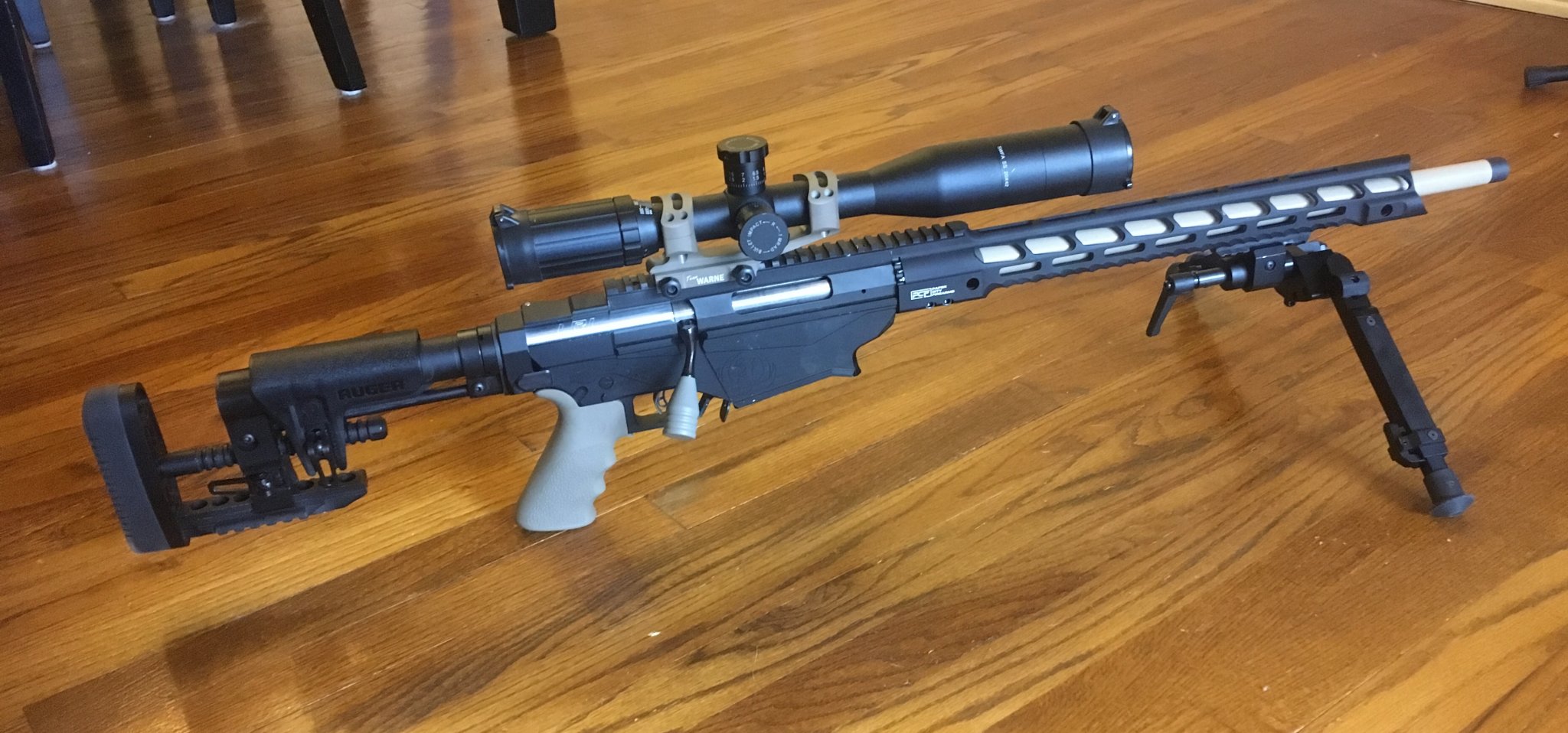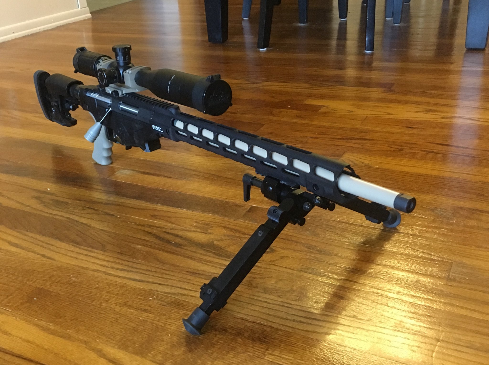 My serious LONG TERM project. It was a NIB gen1 243 that I bought many moons ago and put away after having the handguard and lower Cerakoted Magpul FDE by a friend. Pulled the stock barrel off tonight and mocked up my new 6 CM barrel. Don't mind the RDS mount. It's actually holding the handguard to the rail for now. I also threw in a Timney 2 stage flat trigger. Next mod will be an Arca rail.