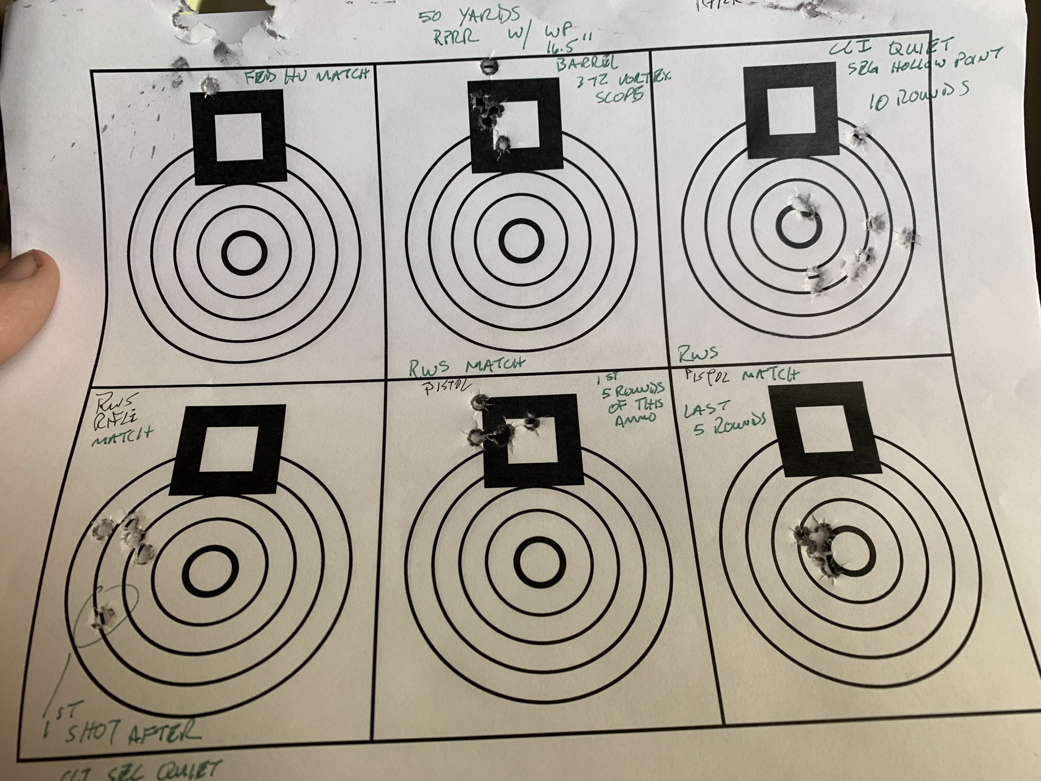 This barrel hates cci quiet segmented hollow points. It shot like crap at 50 yards