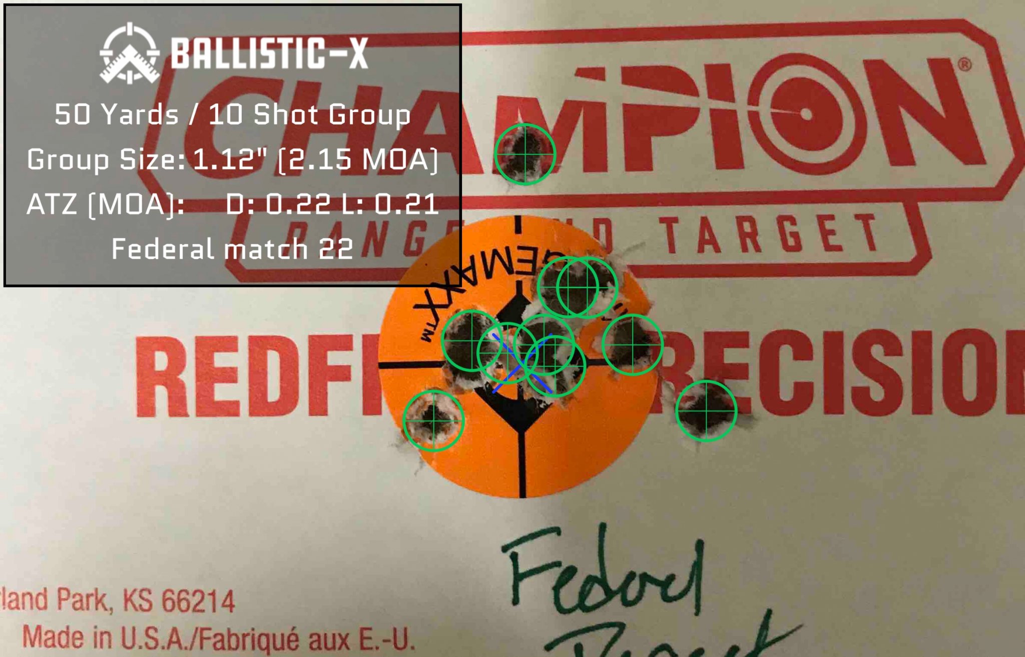 That's about right. Try some different ammo. I can sneak under that pretty regular with CCI Standard Velocity. I got a couple a smidge under 0.75" this morning. It's a hoot on dirt clods at 200+.I just got back from the range today. I put about 150 round thru it. I used federal match (tan box) and Aguila super extra. I got some Chrono readings