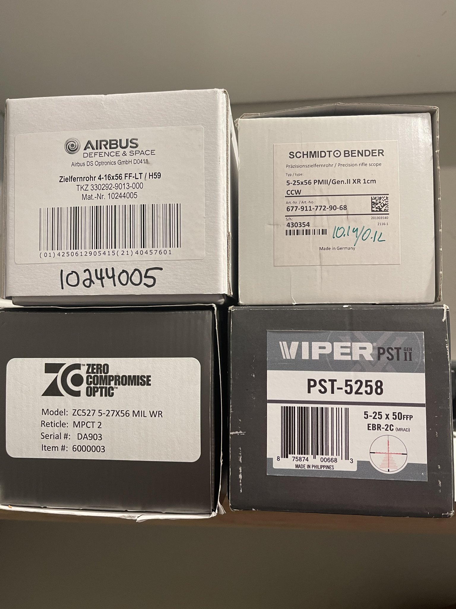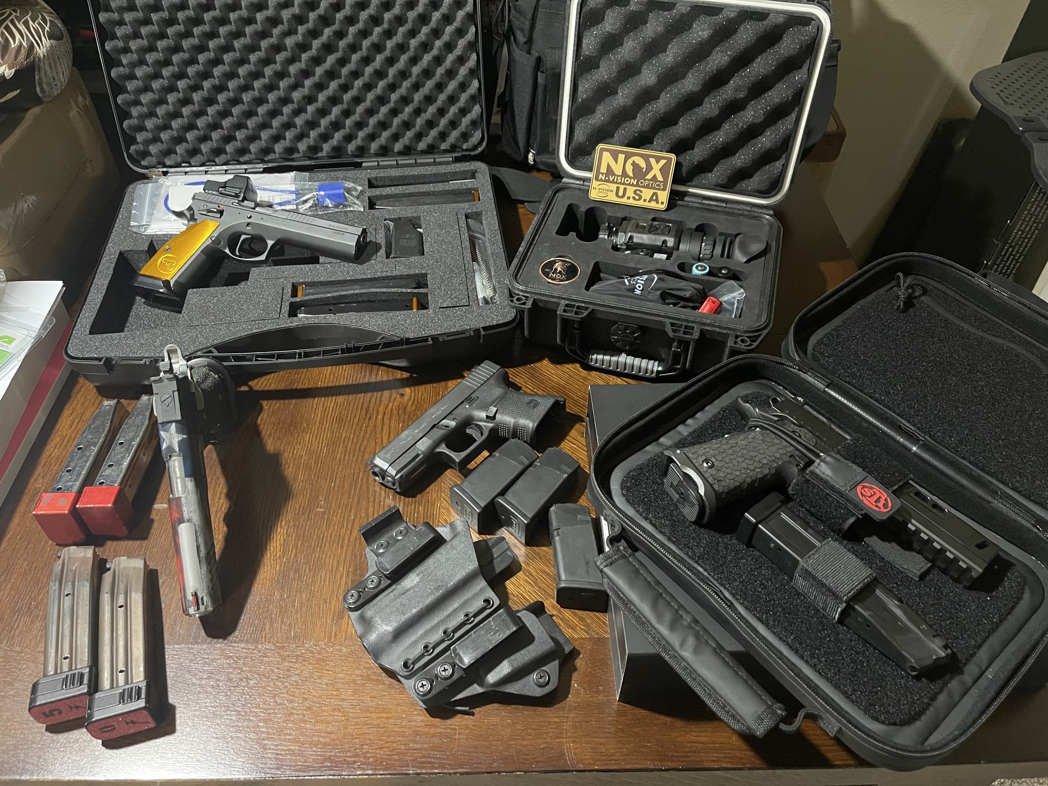 Optics S&B PMII 525 Gen2XR, Hensoldt 4-16x56 H59, STI SVI 2011 .40, CZ TSO 9, GAP Templar v1, ARC rings
