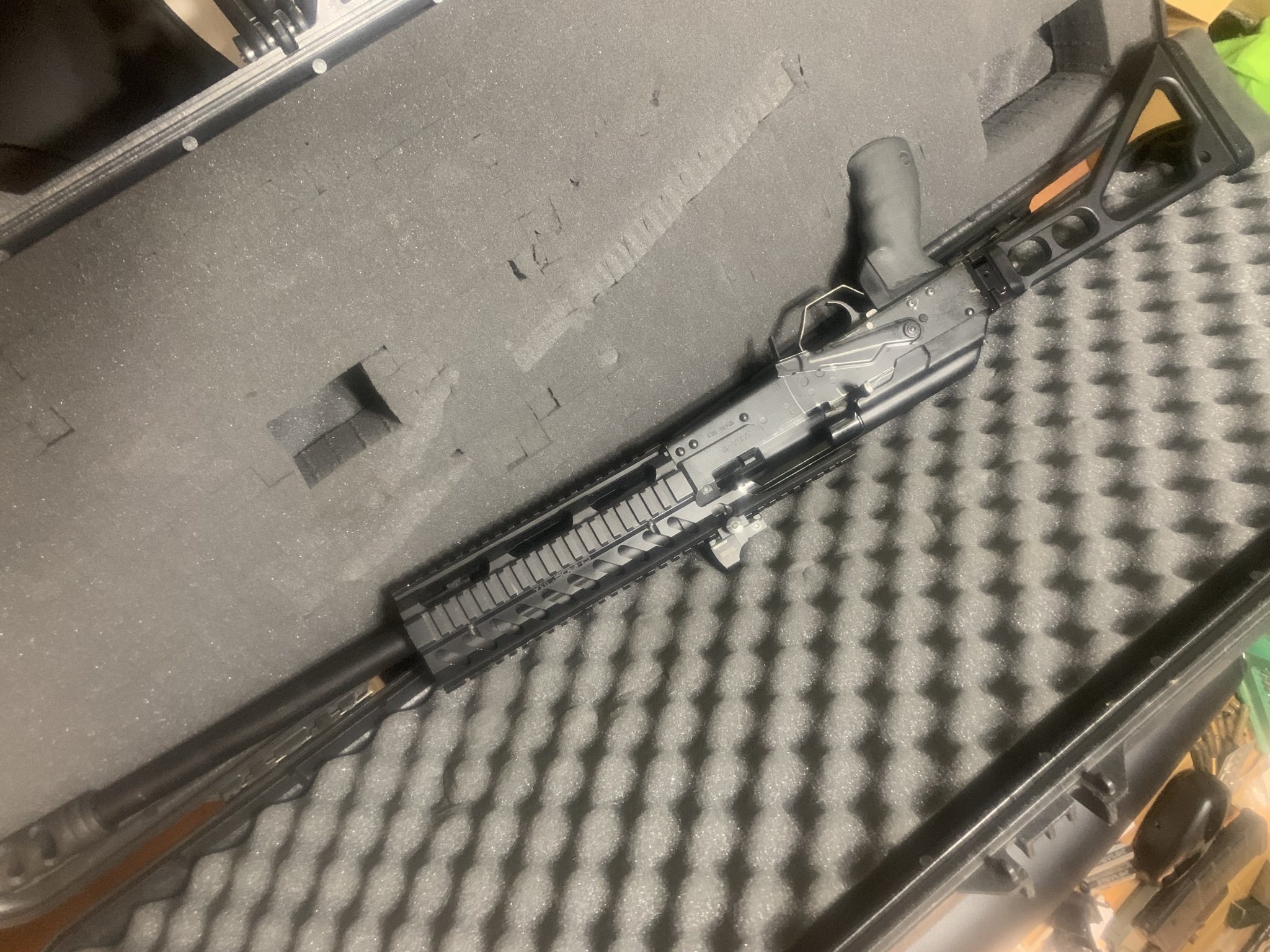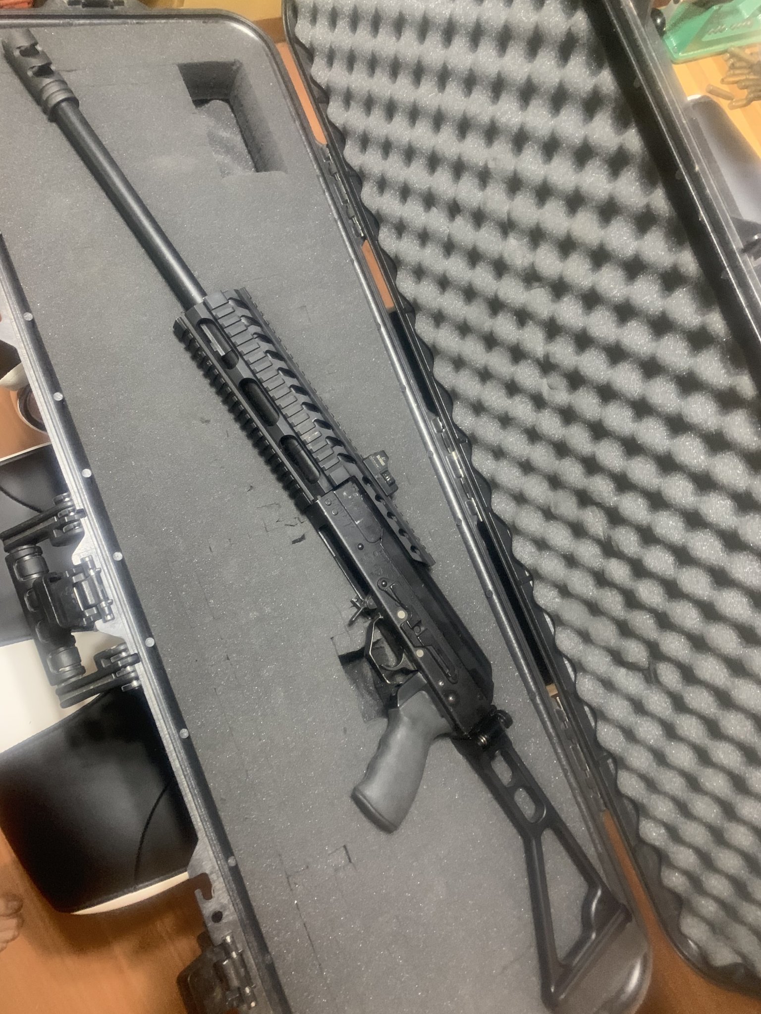 Saiga 12ga, converted, rjf brake, trigger job, bolt polished, billet side folder, billet stock, burris fast fire 2, extra brake(don’t remember brand), reliability kit and a all weather case.