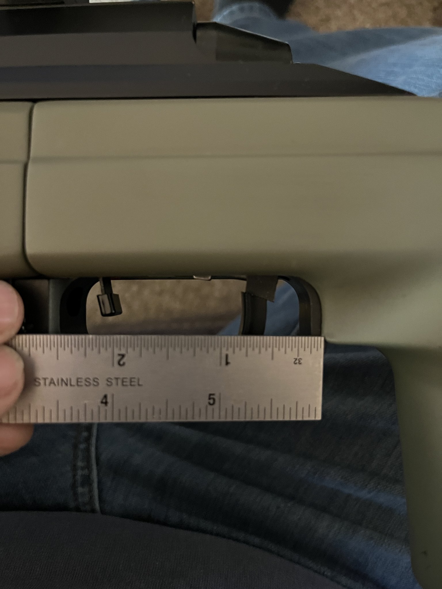 Just grabbed mine. The pic without the ruler is in the cocked position one pic is with the ruler in the cocked position and one is in the fired position. There is some movement in the post fired state, maybe .125 inches but nothing near like the first stage in the cocked position. Hope this helps.View attachment 8232633View attachment 8232634View attachment 8232635