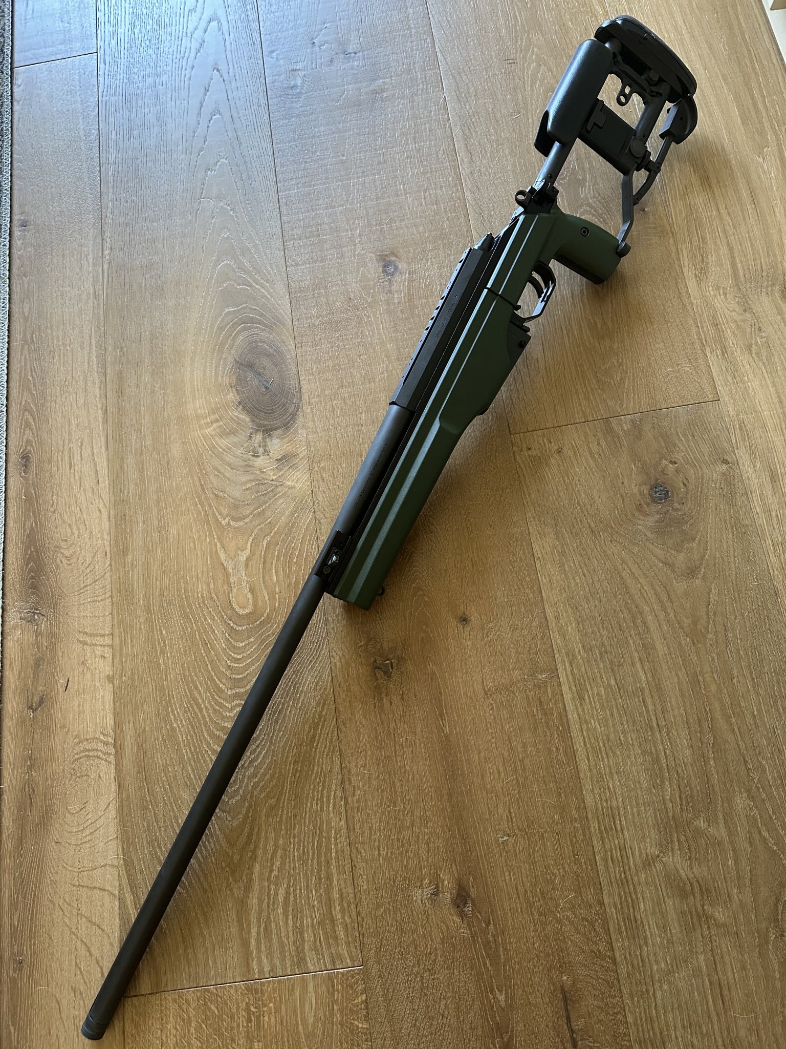 Sako TRG42 in excellent condition - factory folding stock and 27” 1:10 twist threaded .338 lm barrel. Comes as you see it with factory thread protector and 1 mag. 160 rounds on it between me and the original owner.