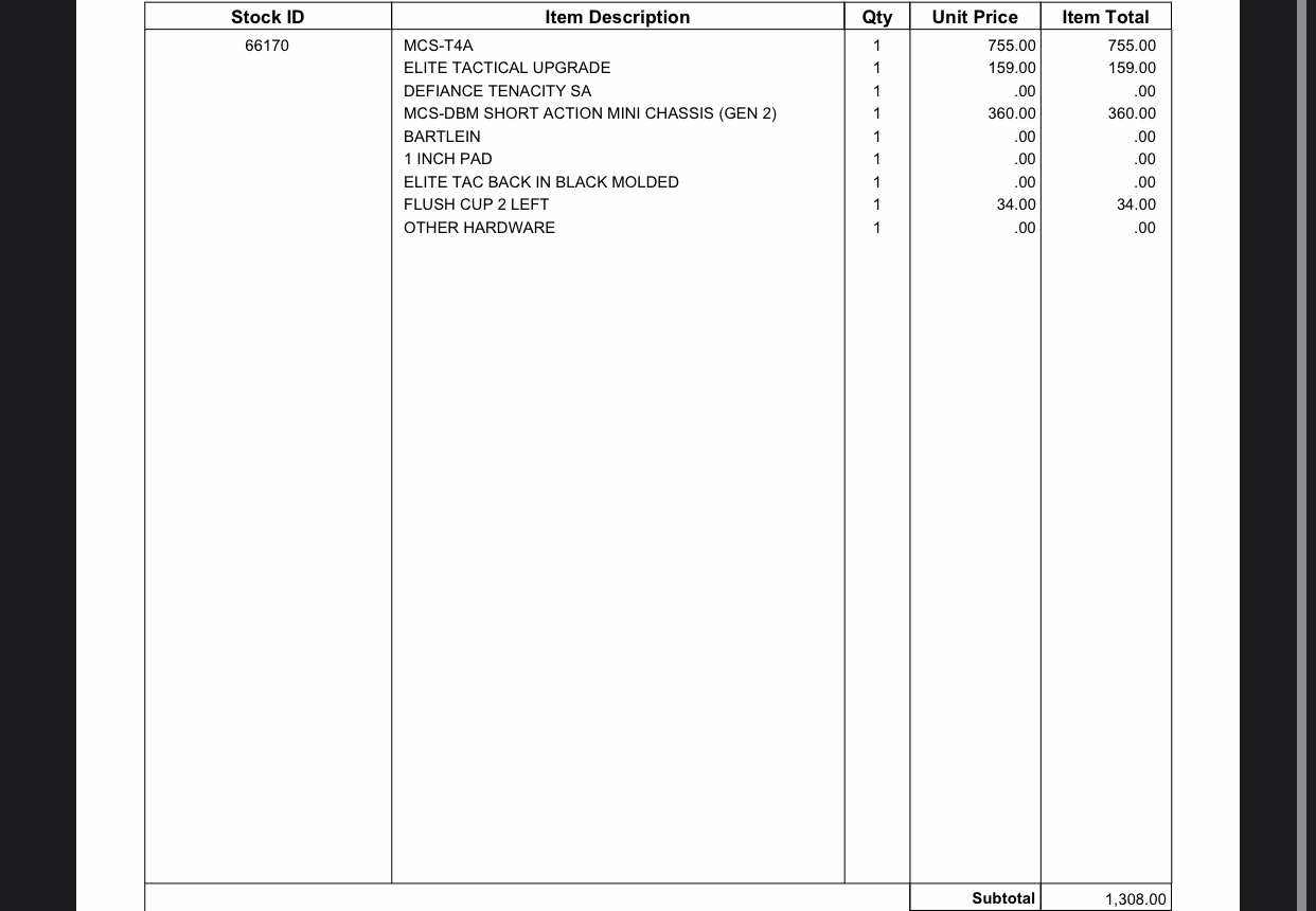 Bought this barreled action from vegashelipilot last year. Stock was new in February. I'm in Kansas if you want a FTF.