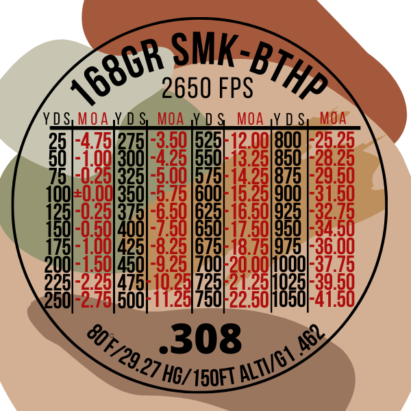 I've been using this template for around two years now. I didnt like the 100yd interval and felt there was a better way to utilize space for more data/precision. If I'm in a situation that requires a precise shot, 100yd intervals only work out to 400-500 before the gaps can cause a pretty substantial miss with bad math.