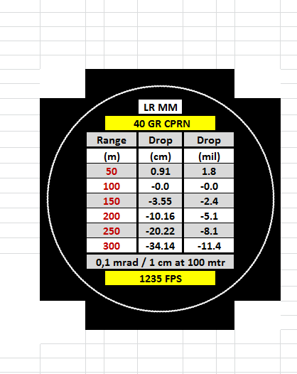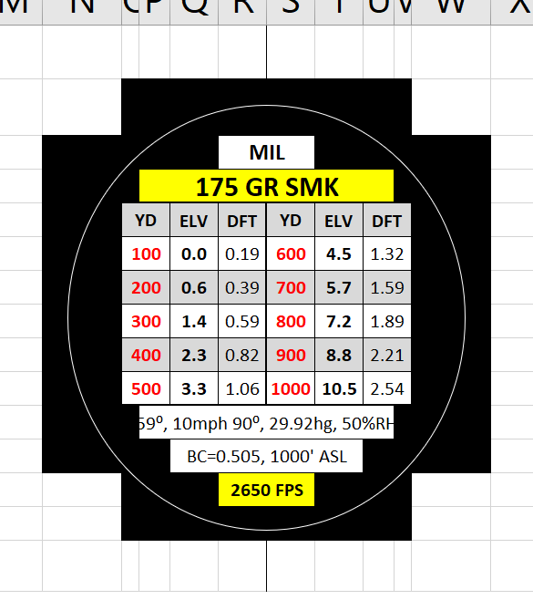 Hello sergeant, can you send me this excel sheet, it looks exactly like those dope disks you could get from vortex (can't believe they stopped making them) And it would fit perfectly in my scope cap... thanks. ([email protected])Made this in excel. For some reason it looks vertically compressed, but prints perfectly round with all text visible. Works well for me.