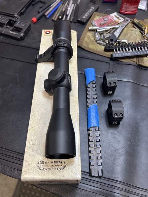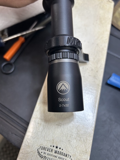 Everything bought new. Burris 2-7x scout extended eye relief optic with BDC reticle and MKM throw lever, Arken 1” low rings, Precision Reflex steel extended eye relief picatinny mount for Remington 700 action. Blue tape capturing screws. Excellent condition, No isues, just returning to a traditional mount / optic.