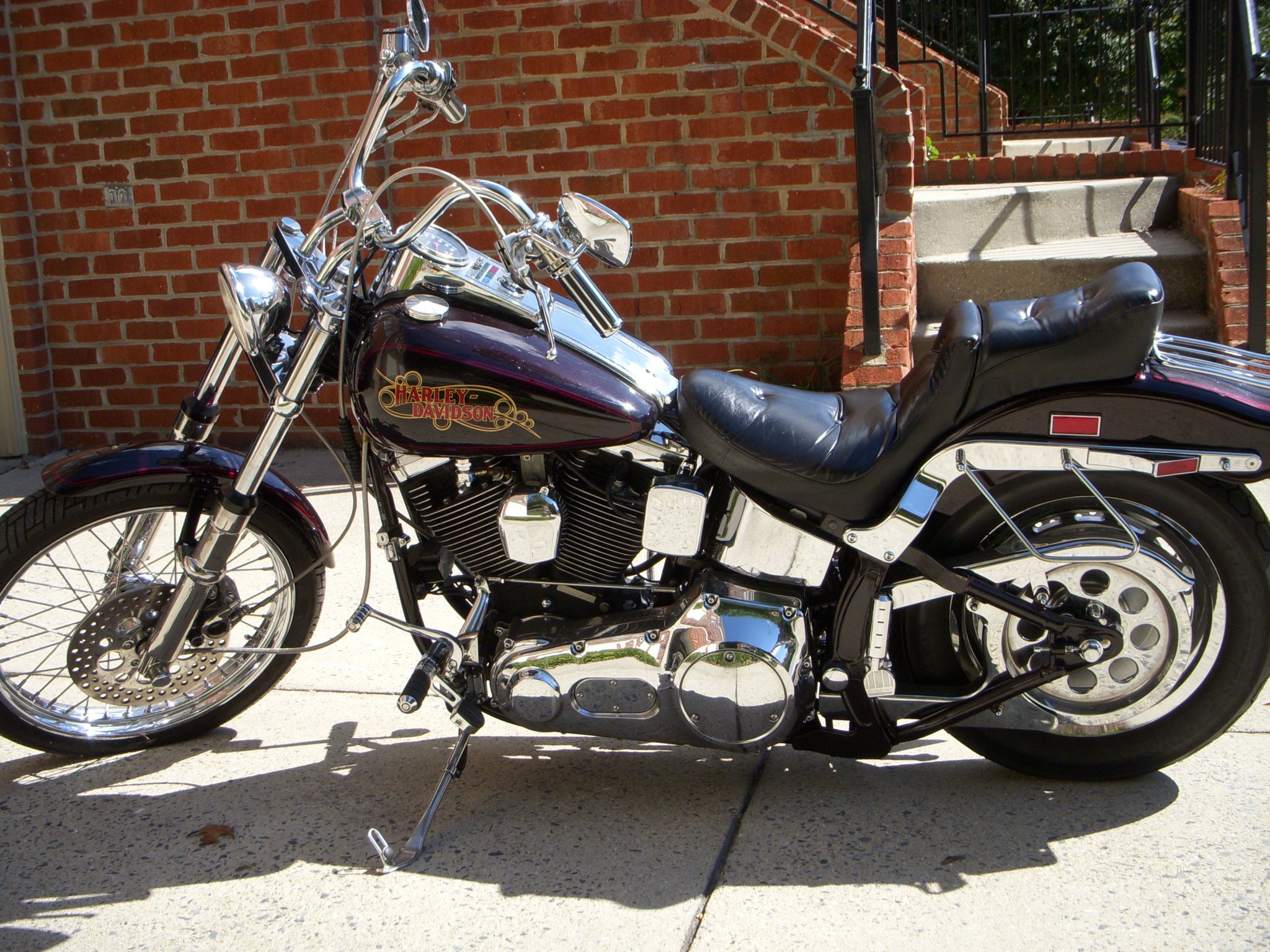 '89 custom softail with further customization details by me...drove it home new...in the snow. So excited, I never felt the cold. LOL