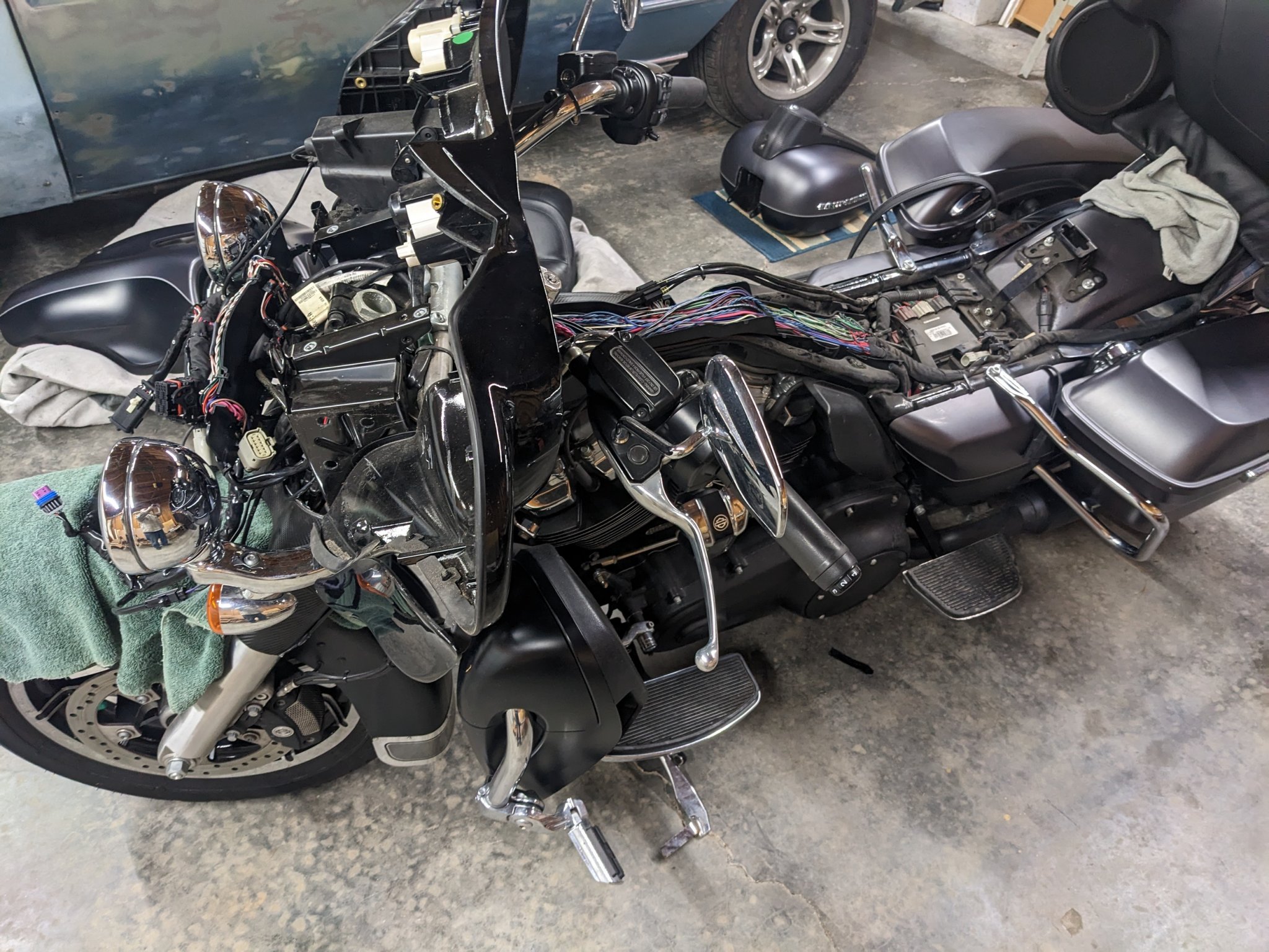 That’s exactly how my bike looked when I installed the heated grips a few years ago…what a pain in the ass. It was pre-wired for heated grips, but not the HD Skull ones I bought, had to put in the old school wiring harness for them.