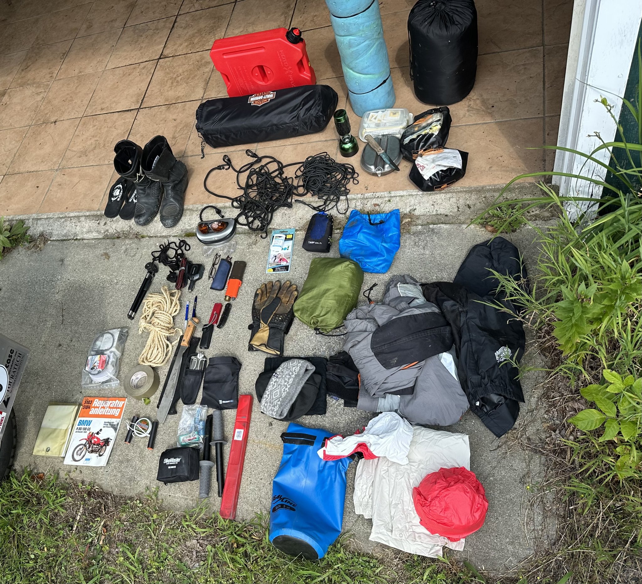 Know where you are going. Need bear spray? Cable locks for your wheels? Hot weather/hydration gear? Think about where you are going and what are the worst cases. Then bring the gear that may keep you alive. Do you need a hand chain saw on Baja? Probably not. Do you need Bear Spray in Norway? Not really. But plan, plan, plan!