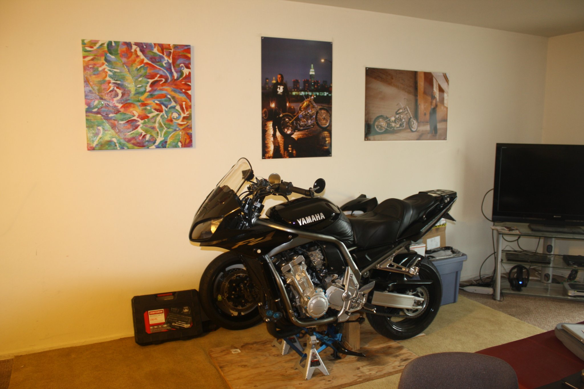 The Holy grail of a modded out FZ1, Front end is complete 07-08 R1, all Traxxion hardware and yes that is a true full Muzzy system you see. Ported boots airbox, much more to list, she gets it ! bout 140 to rear tire, it’s not top tier sport bike but it’s respectable and super plush.