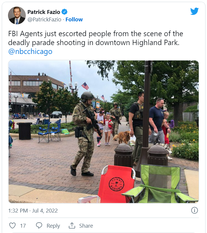 As much as we like to bash on the FBI, I wouldn't be so quick to claim conspiracy just yet. The FBI has offices in Chicago, so they could easily be there within a half hour after first reports came in. With all the interstates running through the greater Chicago area, by the time the "person of interest" was even Id'd, he could be in Michigan, Indiana, Wisconsin. By now he could also be in Iowa, Ohio, or well on his way to Minnesota, Missouri, Kansas, Kentucky, Tennessee. Crossing state lines puts him in the FBI's jurisdiction.They had to be there already if they drove the shooter to the building.