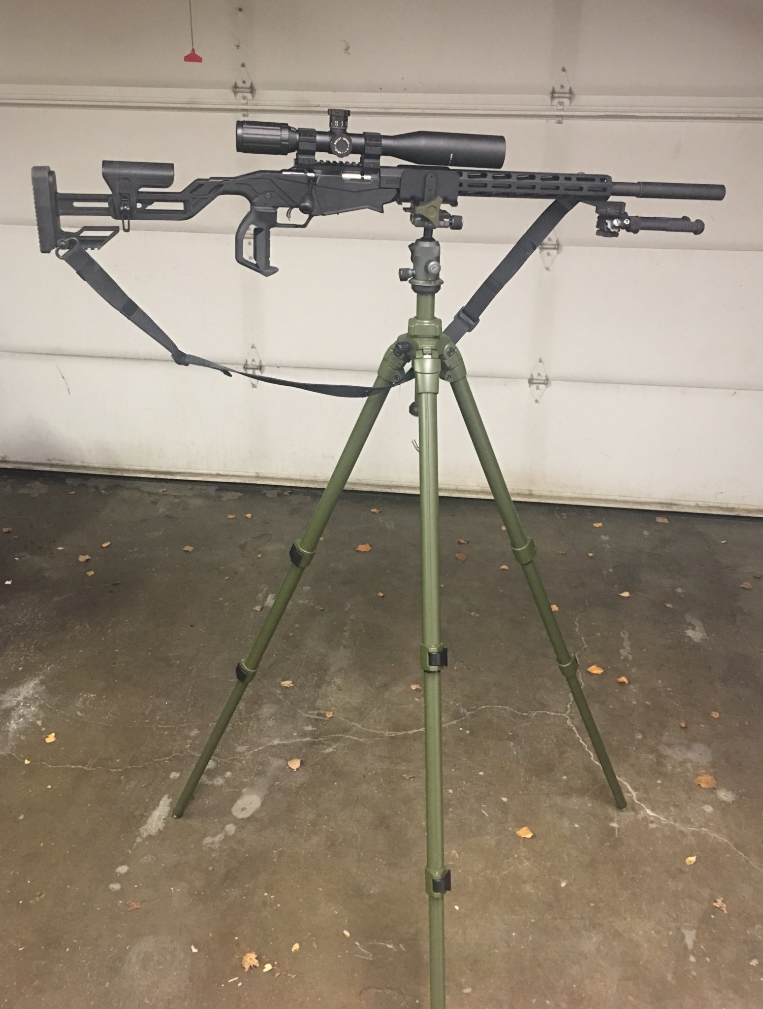I am just starting to shoot off a tripod. My set up is the mission-critical carbon tripod, Sunwayfoto 55 ball head (rated to 125 lbs) and the hogg saddle. I will be shooting a Sako Trg-42 in 338 and a Tikka in an MPA chassis.