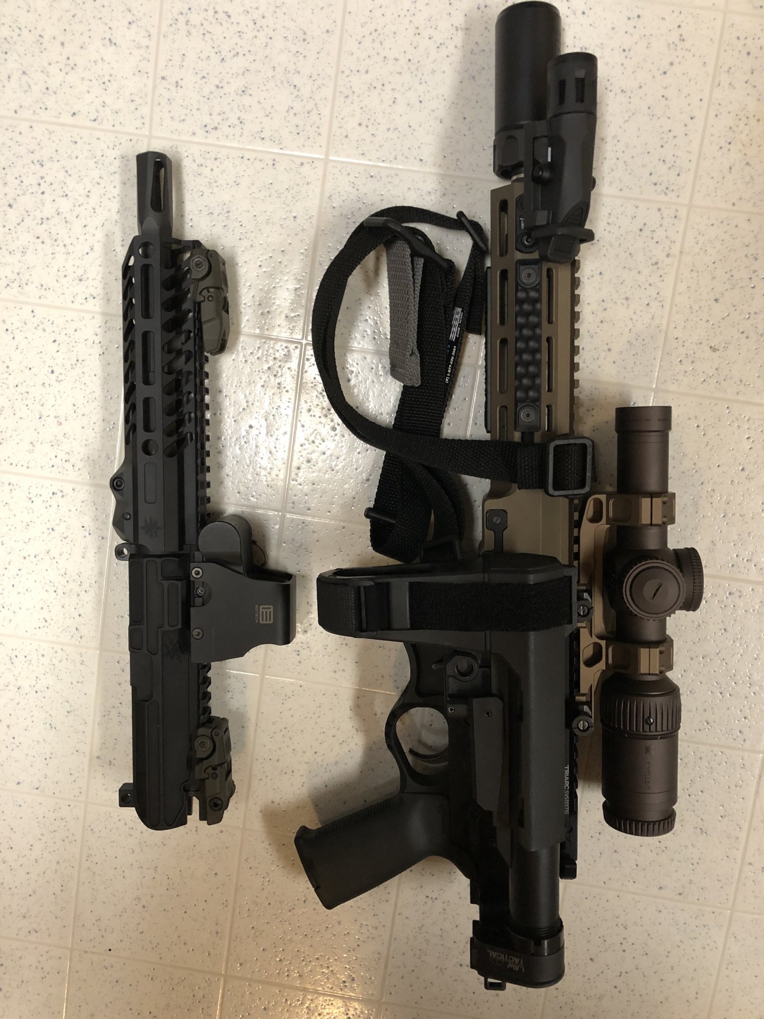 An option to consider if you haven’t already, for an AR pistol (depending on if and how you plan on toting it around) is the Law folder. It’s a nice piece of kit that allows you to transport and store your firearm in smaller bags etc but still be quickly deployable as opposed to having it broken down into separate upper/lower. In my opinion your “shtf” rifle/pistol should be something you are able to and will easily grab to throw in your car when you leave the house every time, and not cause unnecessary attention. As far as optic goes just pick something you like and and are comfortable with. If you want fast and lite go with an Aimpoint or eotech, if you think you may want a Lpvo get one and try it out. Wait around for a good deal on something used, give it a shot and resell it if it’s not your thing. I find that no matter how many people’s opinions I read about some things, I really am not satisfied until I get some firsthand experience to see/decide for myself sometimes.