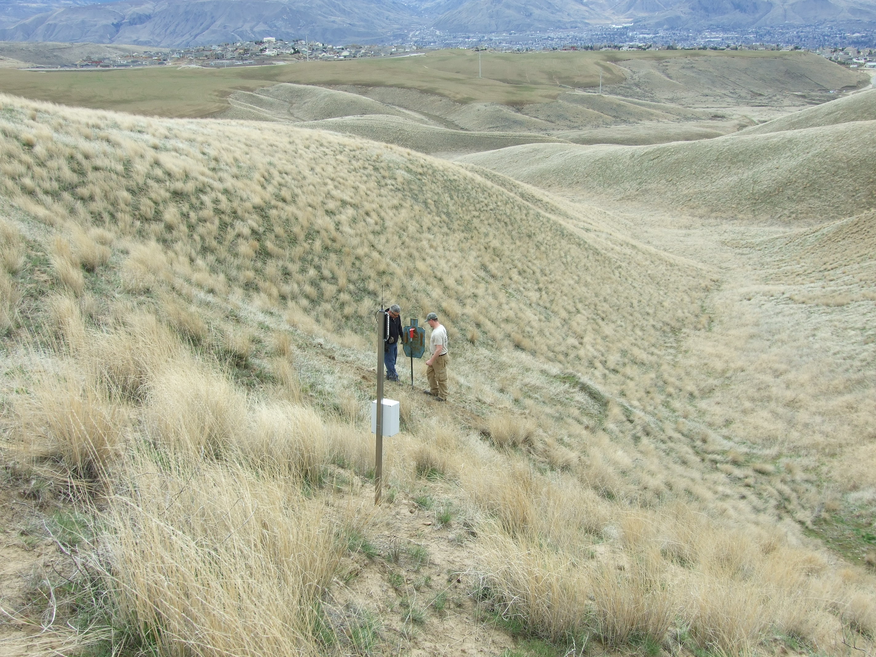 We dig up the grass around the targets and rake away any grass that could ignite ( and it helps indicate missed impacts better ), hump metal, paint, pound posts, check yardages, roll tape rolls down the hill - hump after them - and repeat :) .