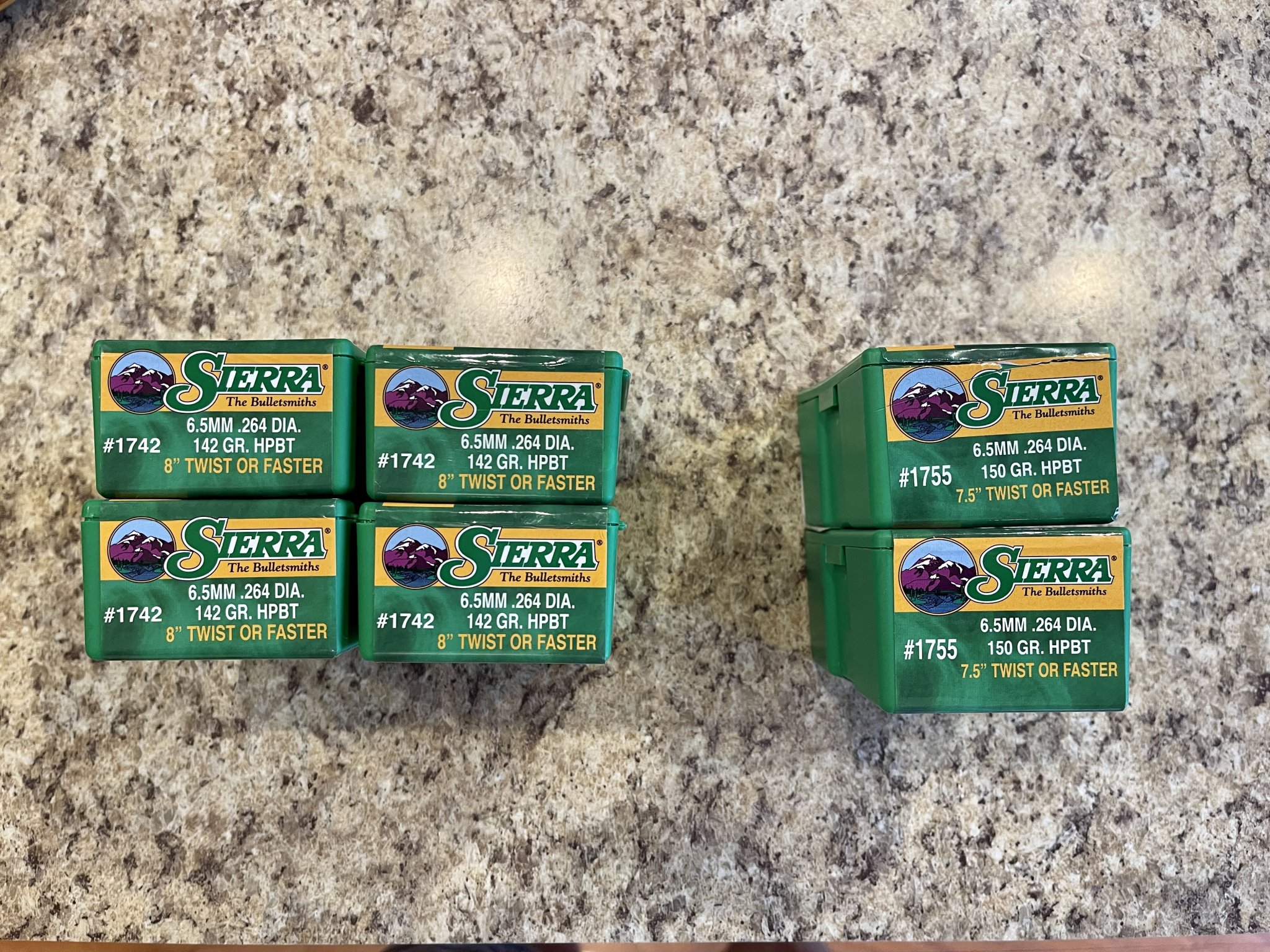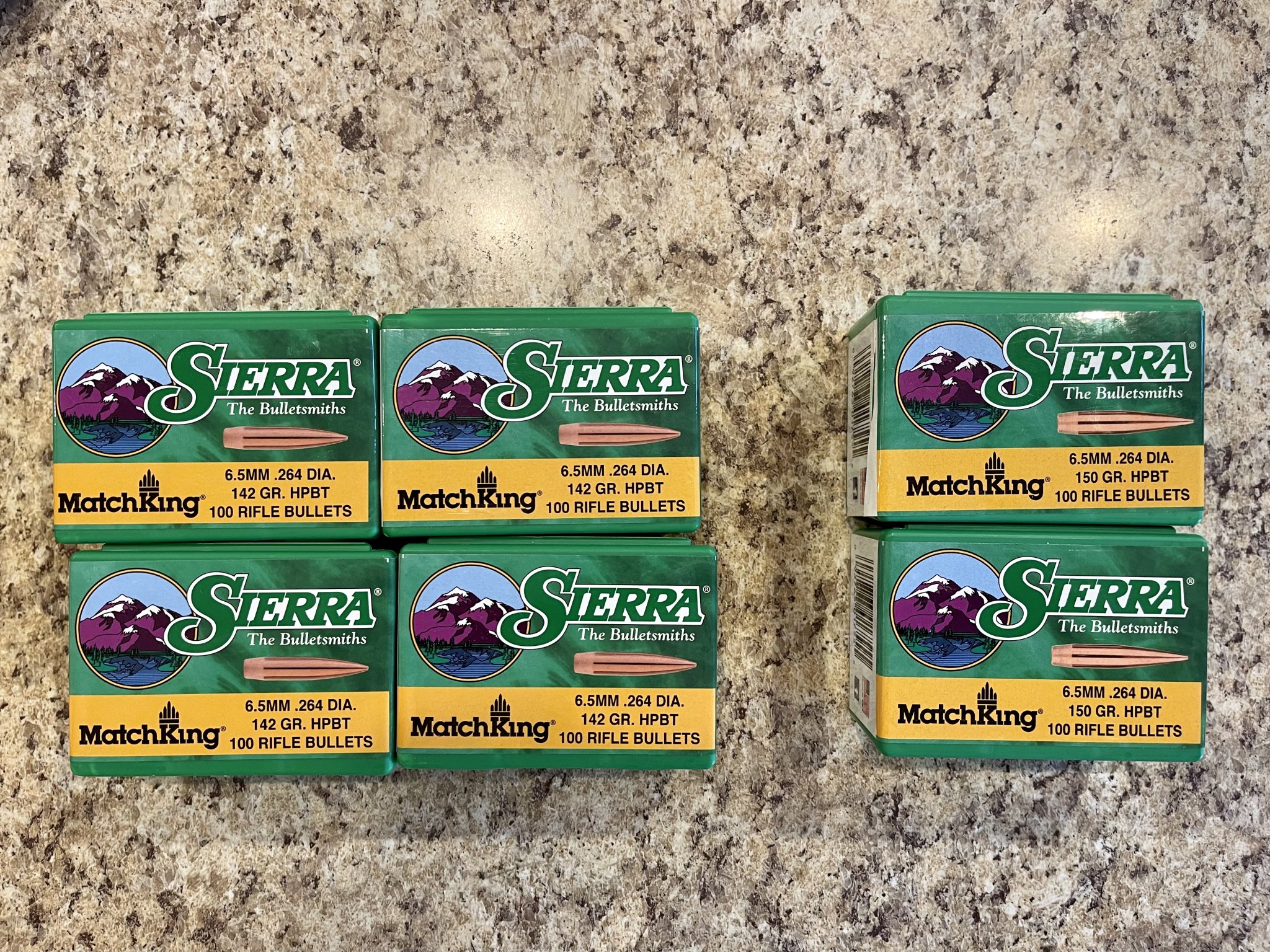 4 new boxes of Sierra 6.5 142gr Matchkings, 400 total. Asking $220 shipped