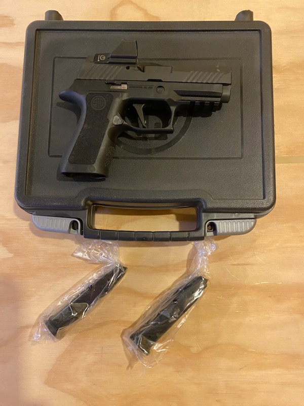 SIG 320 Compact RX 3.9" barrel with SIG Romeo Red Dot Optic 2 Fifteen round magazines. X Compact frame with SIG straight trigger & extended ledge take down lever, case, ready to run. Clean and little use. Shipping on you.