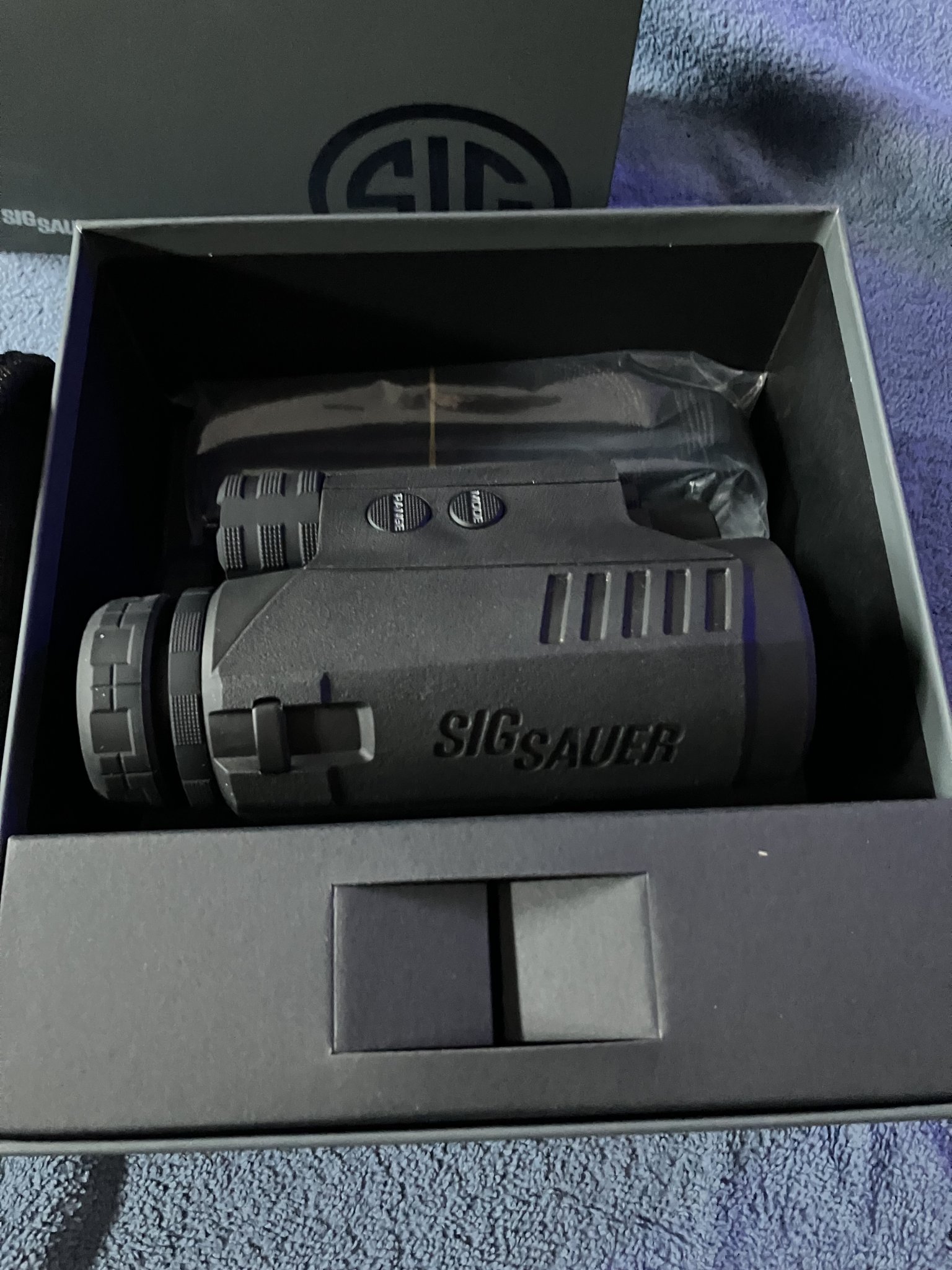 Brand new Sig Saur Kilo 6k HD 10x42 laser range finder. I opened the box and threw the battery in to check if everything worked.