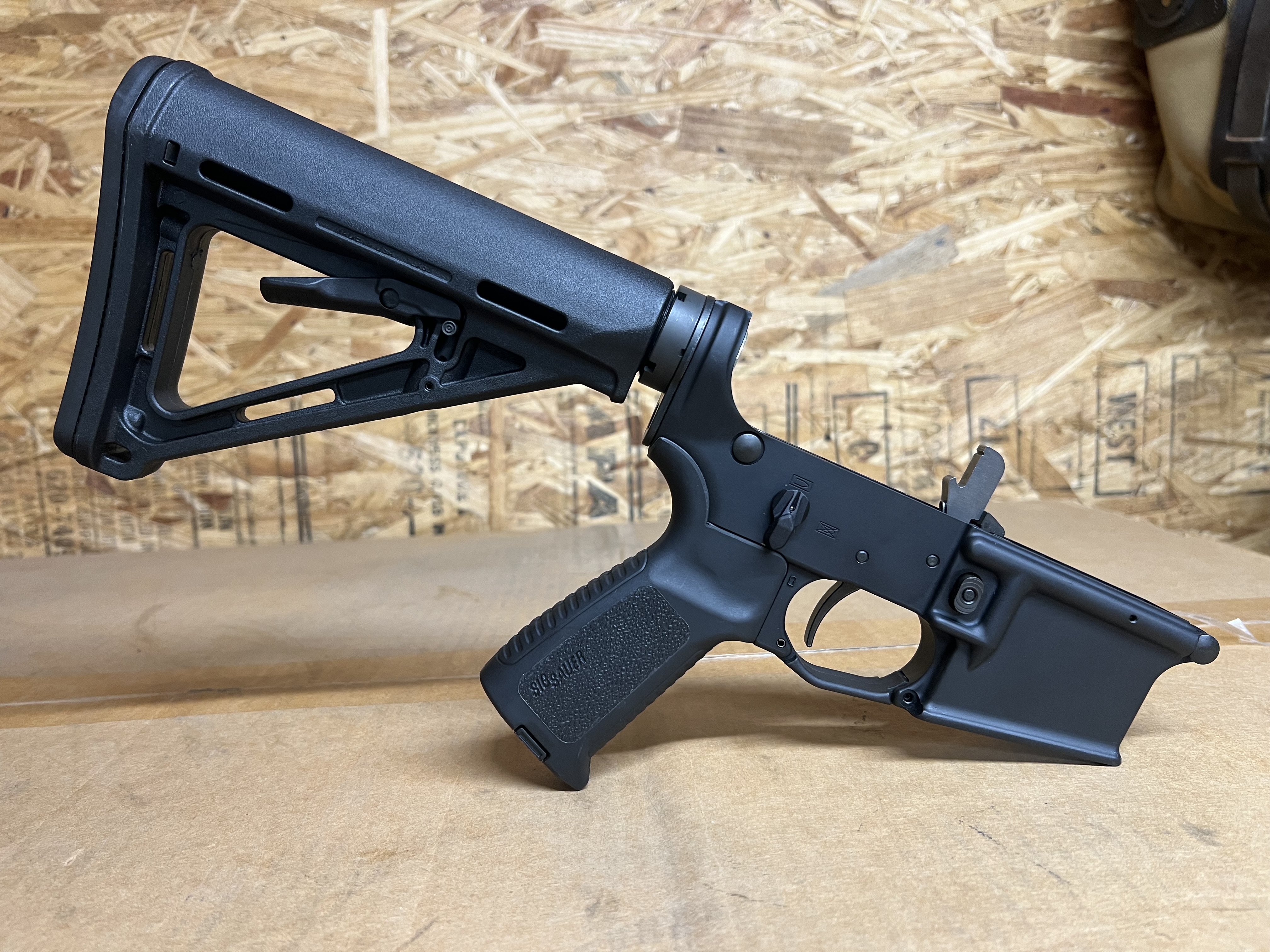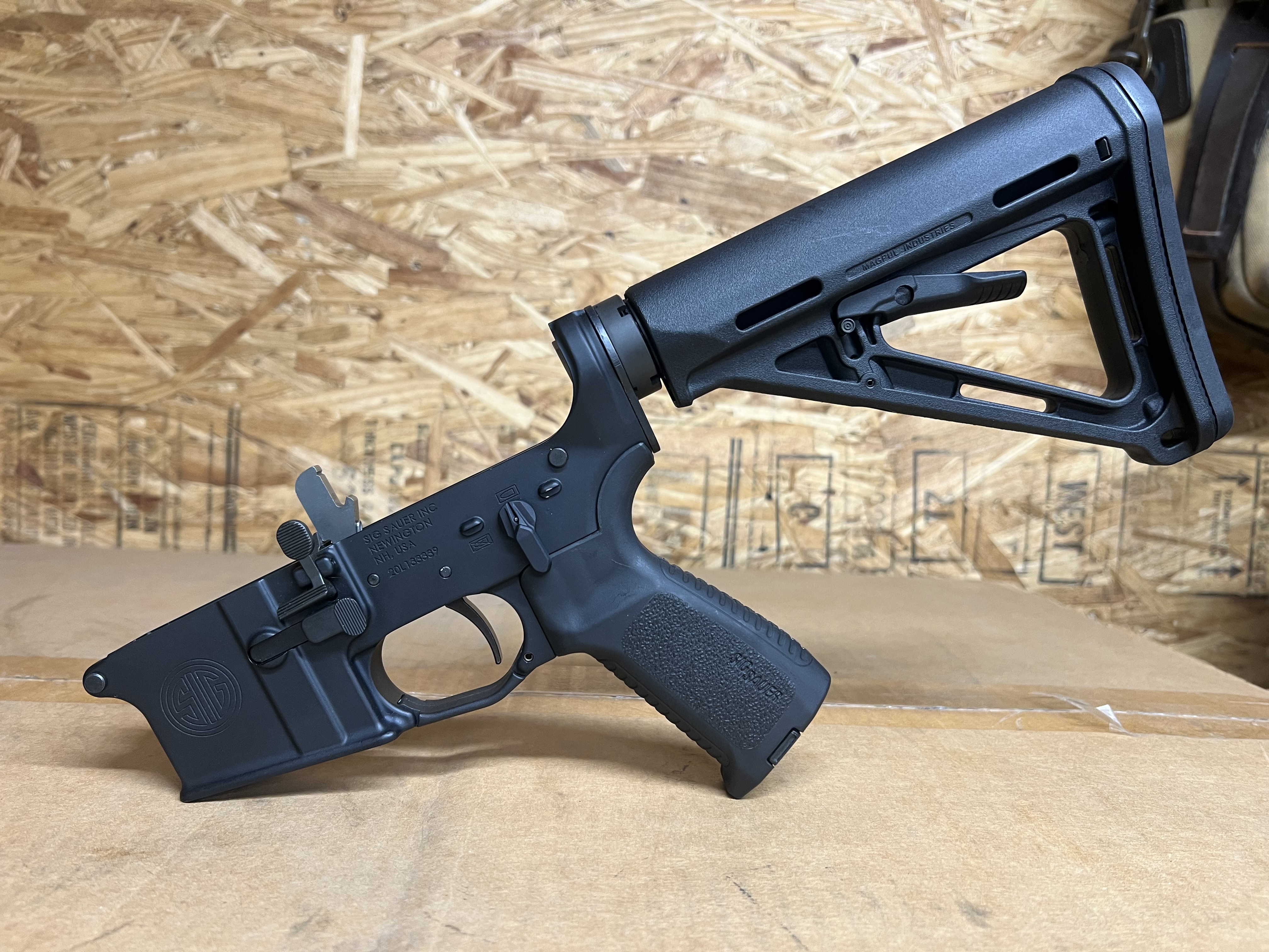 Unfired sig Sauer AR-15 lower receiver w/ Timney Trigger, Radian safety and magpul stock.