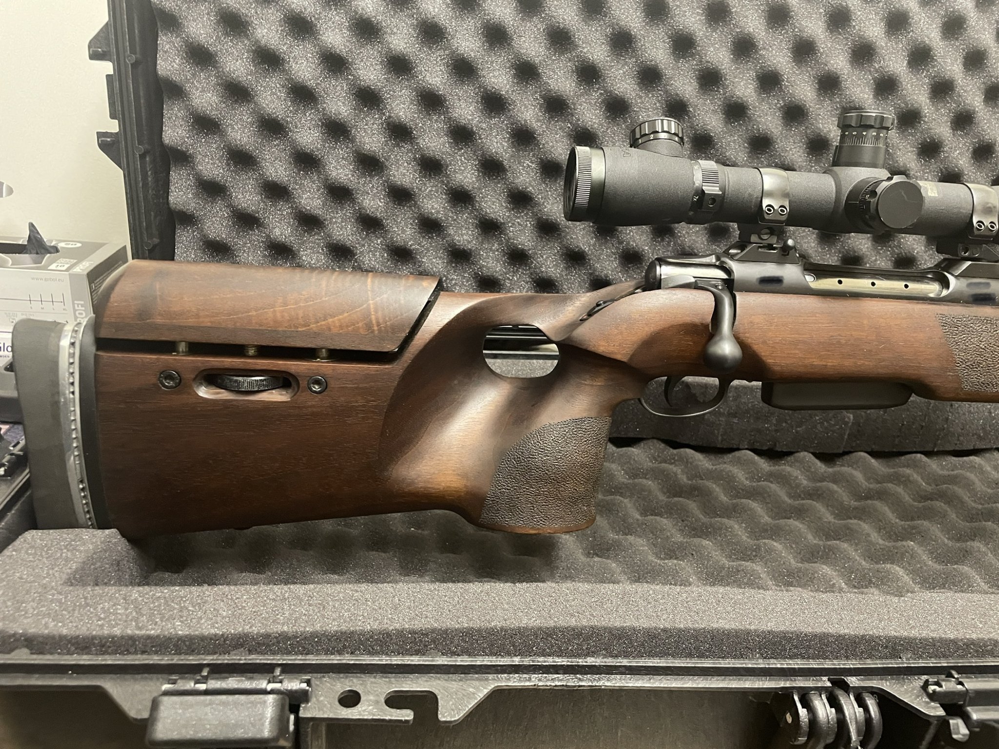It was available in a multitude of calibers, ranging from .223 Rem to 300 Weatherby Mag (saw one for sale in Switzerland), with 308 Win probably being the most "popular" choice.