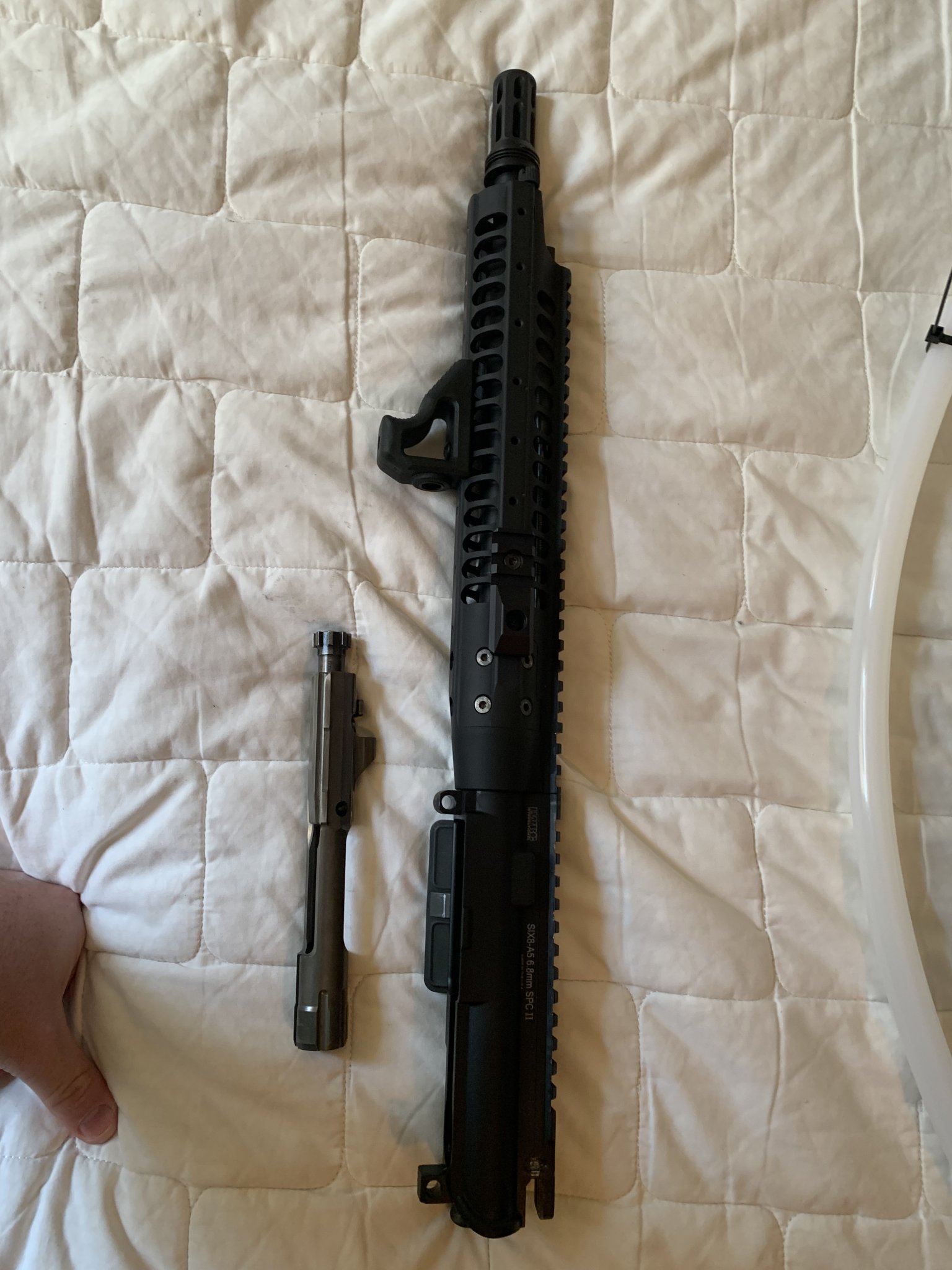 Lwrc six8 12.7” upper comes with bcg, spare top rail screws, angle fore grip and pic rail attachment sections. Bought used with claimed 200 rounds put about 350 rounds on it myself. OSS flash hider mount not included. Looking for $950 shipped. PayPal ff or USPS money order.