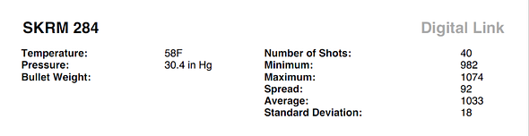 First time I have chronoed my 457/ Proof CF. Very surprised with the deviation out of it on SK S+… 65 Rnds / Avg 980 / SD25 / range 913 - 1006