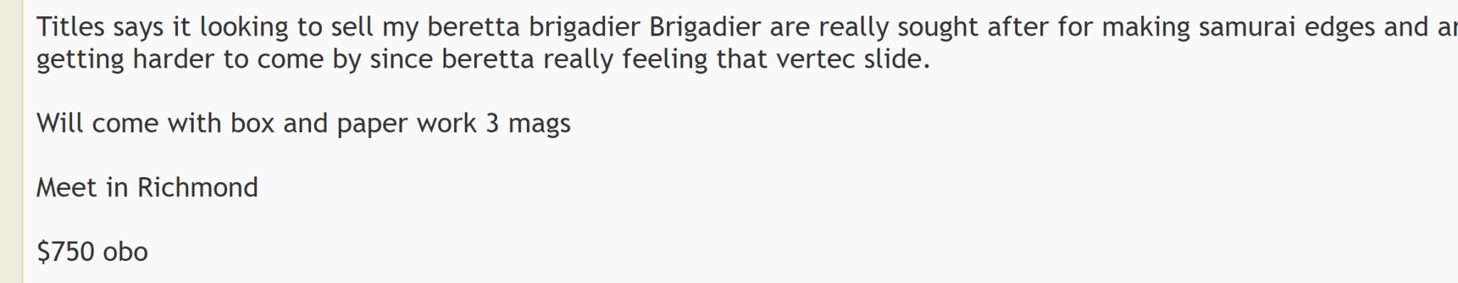 More info please.92’s are fucking garbage as is Berettas CS. My attorney is filing a lawsuit against them in the coming months for an injury sustained due to my new 1301 malfunctioning due to a manufacturing defect as soon as it’s fully healed.