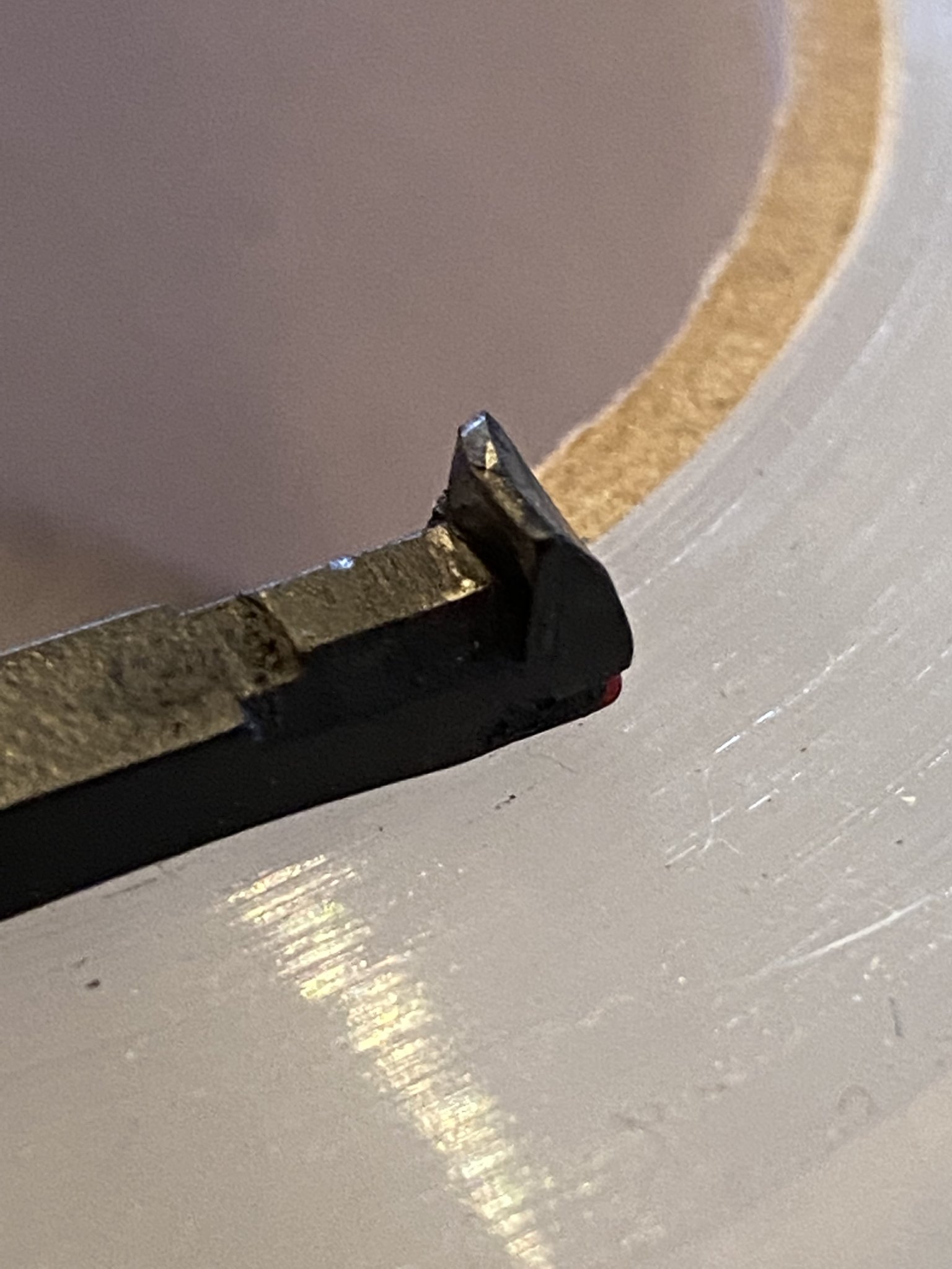You can see in the close up of the old extractor what happened (sort of... hard to photograph): corner chipped. I am honestly baffled at how low quality the original extractor is. I mean it looks like shit. The replacement I put in was machined smoother, the chamber indicator red paint actually exists, the extractor claw is more defined, etc. Like WTF Beretta? Talk about "top notch" quality control.