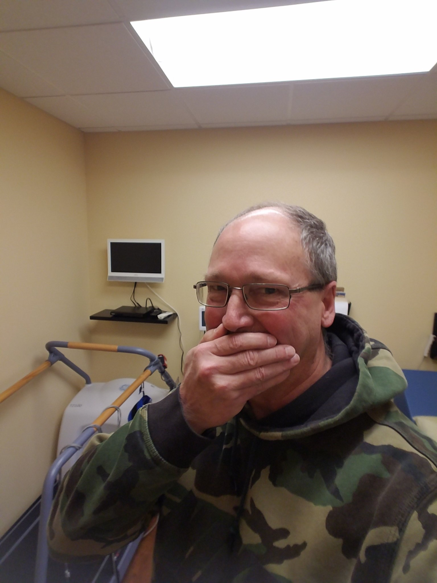 In the "waiting room"I'm in the cardiology waiting room getting ready for another shot at a stress test. I got 4 people looking at me like I got mental issues. I can't stop giggling.?