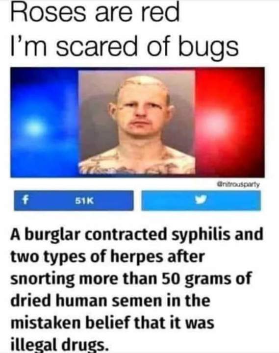 I’ll do you one better. What kind of person dries their semen into a powder?50 grams =1.763 ounces = 771.618 grains.....What kind of person leaves that laying out for just anyone to find??![]()