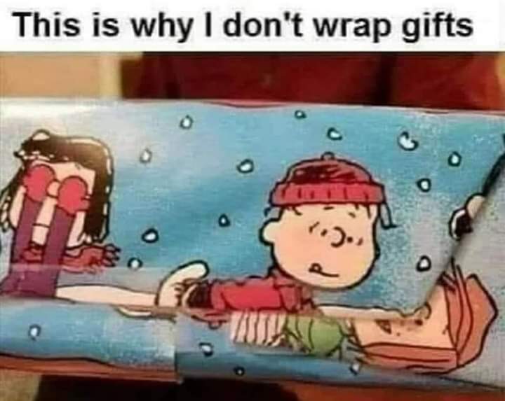 It would be better if it said “This is why I am not allowed to wrap packages any more”