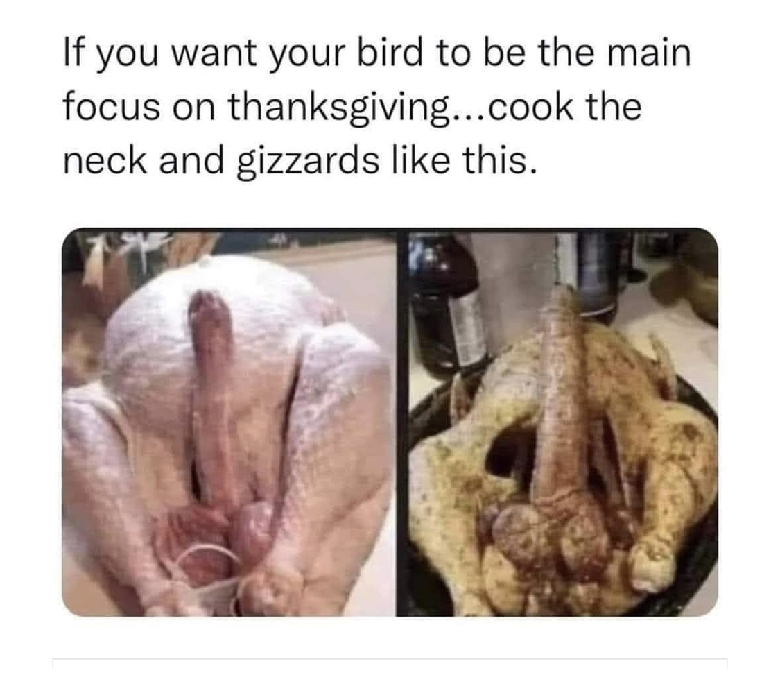 Nothing says "Thanksgiving" like 14" of turkey neck hanging out of the fly of your Dockers.