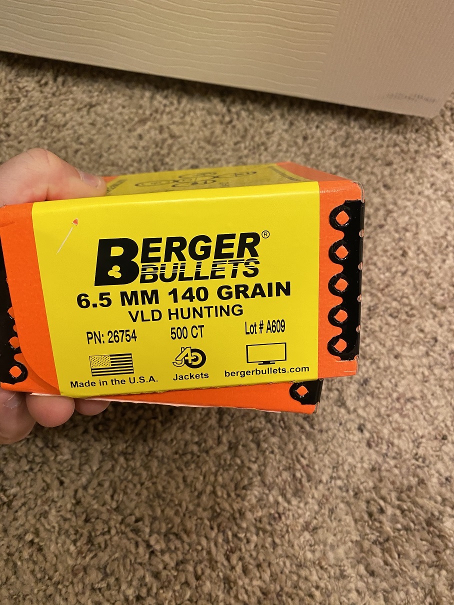 I am selling 300 6.5mm 140gr Berger VLD Hunting bullets. Asking $115 for the Bergers.