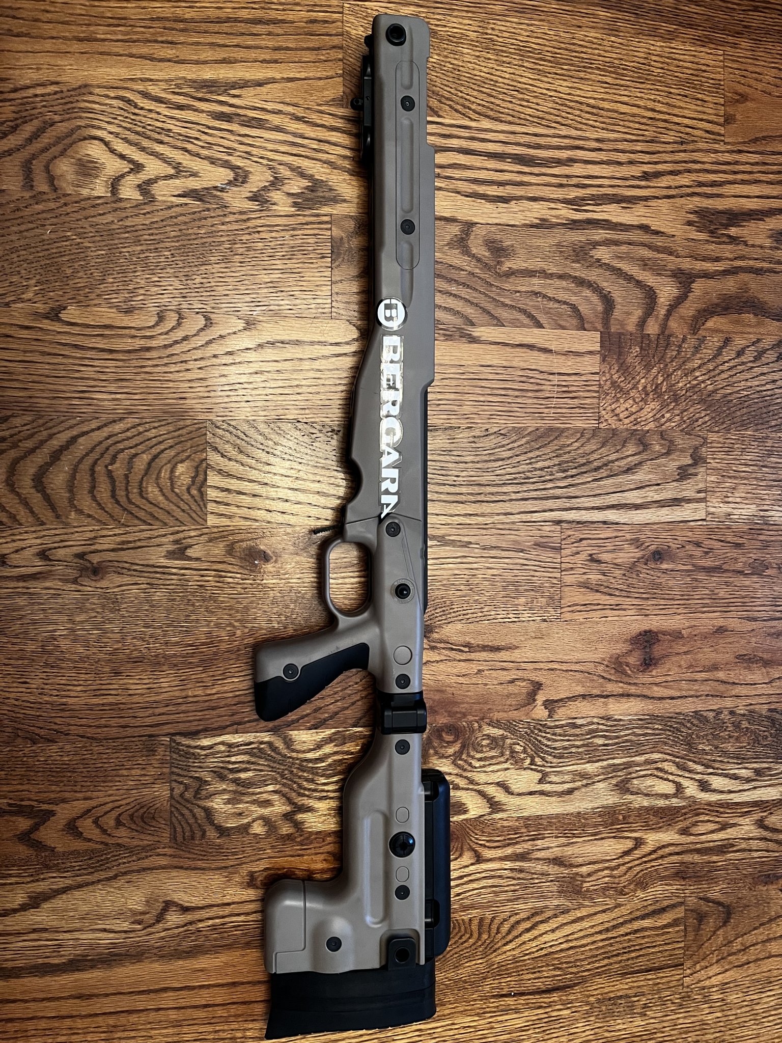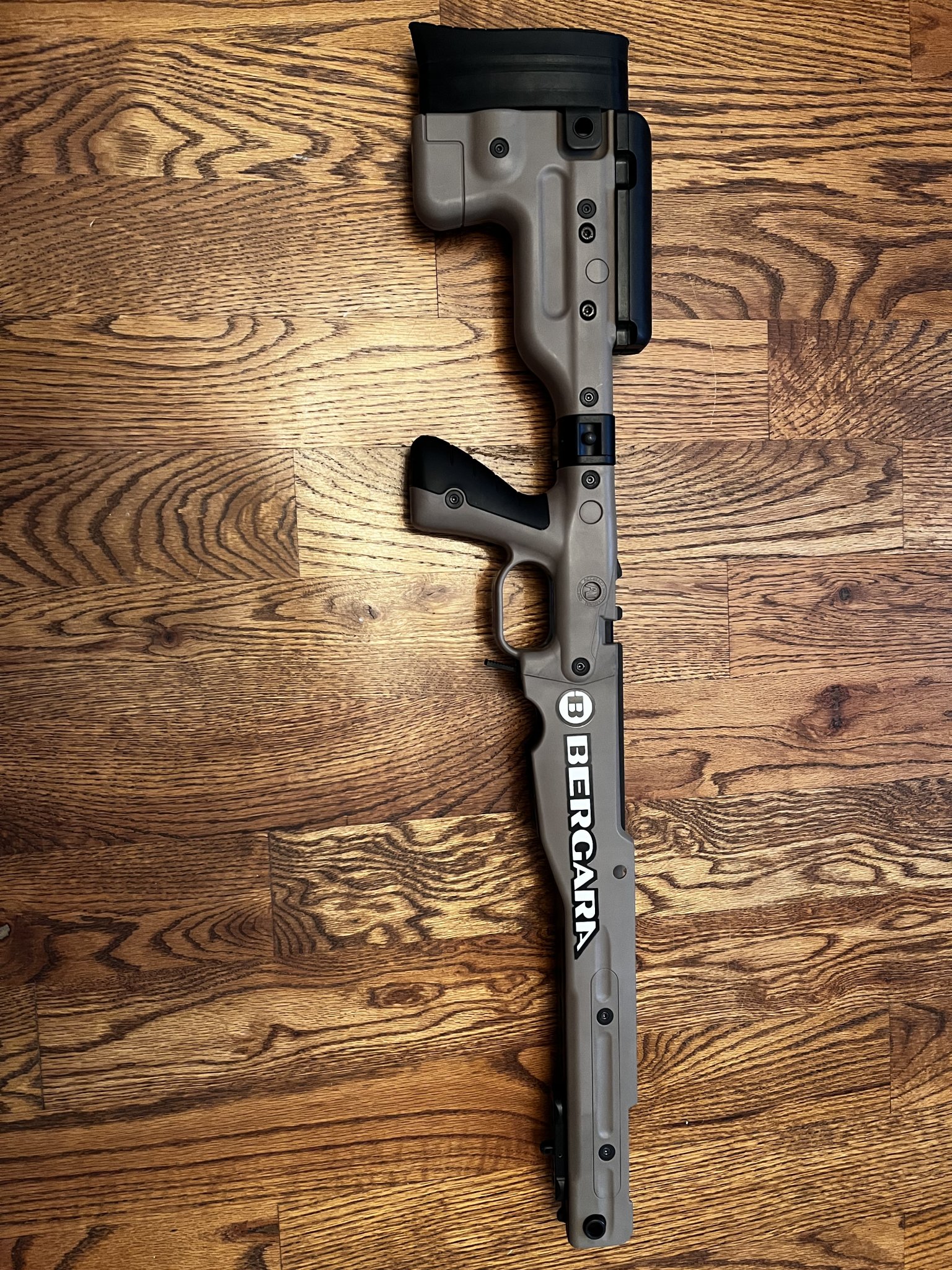 I’m looking to sell my AICS 2.0 chassis. I purchased this in 2015 with the intention of building a compact .308 tactical rifle. I ended up buying a Remington 700 SPS barreled action and mounted it in the chassis. It only took me two boxes of ammunition to decide that I didn’t like the fit of the chassis, but I hung onto it anyway. I recently sold the barreled action and have decided to sell this as well. The Bergara decal will come off, if the next owner decides to remove it.
