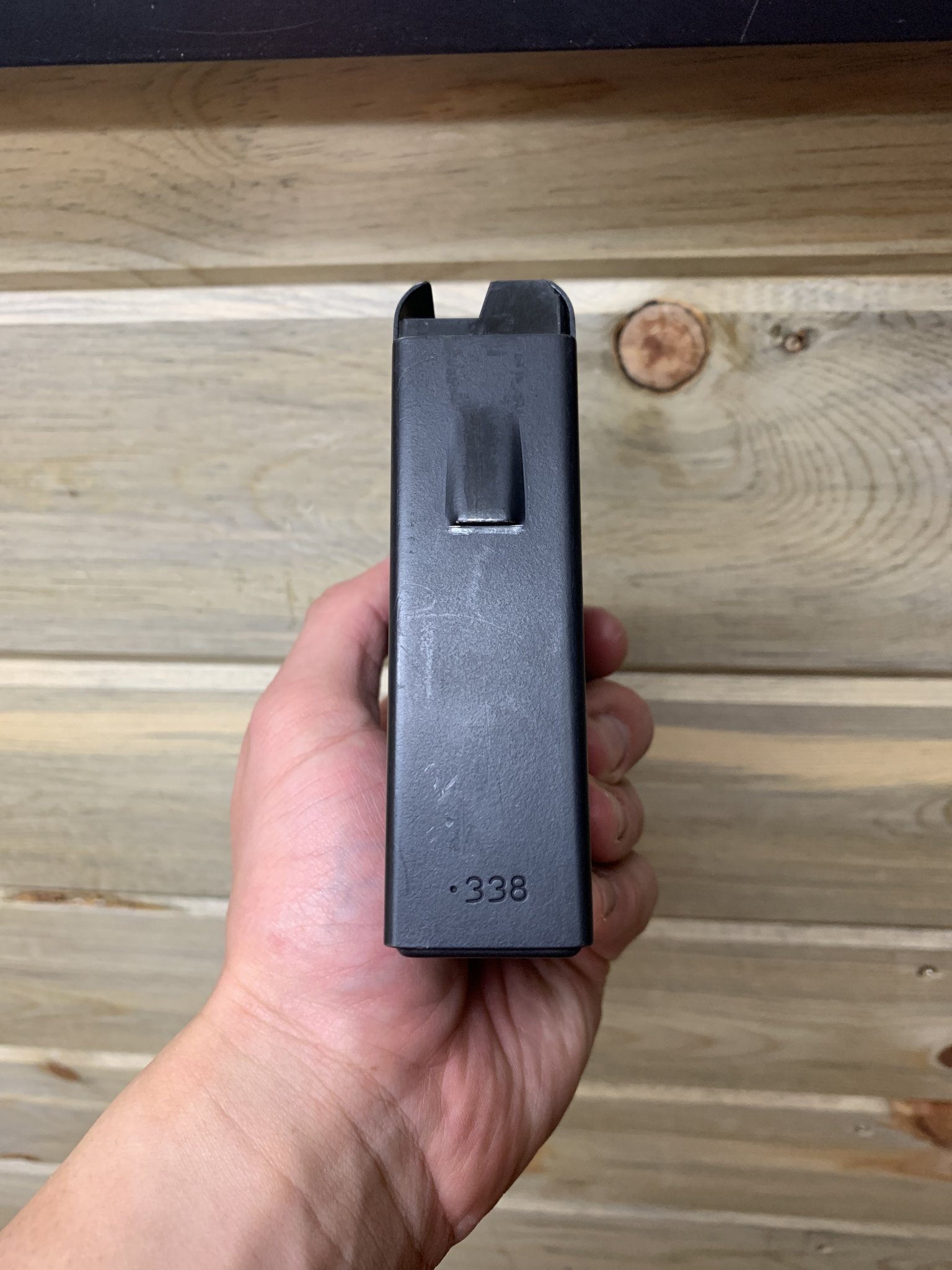 I have a lightly used AXMC 338 Lapua magazine. I’ll sell this for $100 and buyer pays shipping or do a straight trade for a AXMC 338 Norma Magazine. This magazine is black and holds 10 rounds.