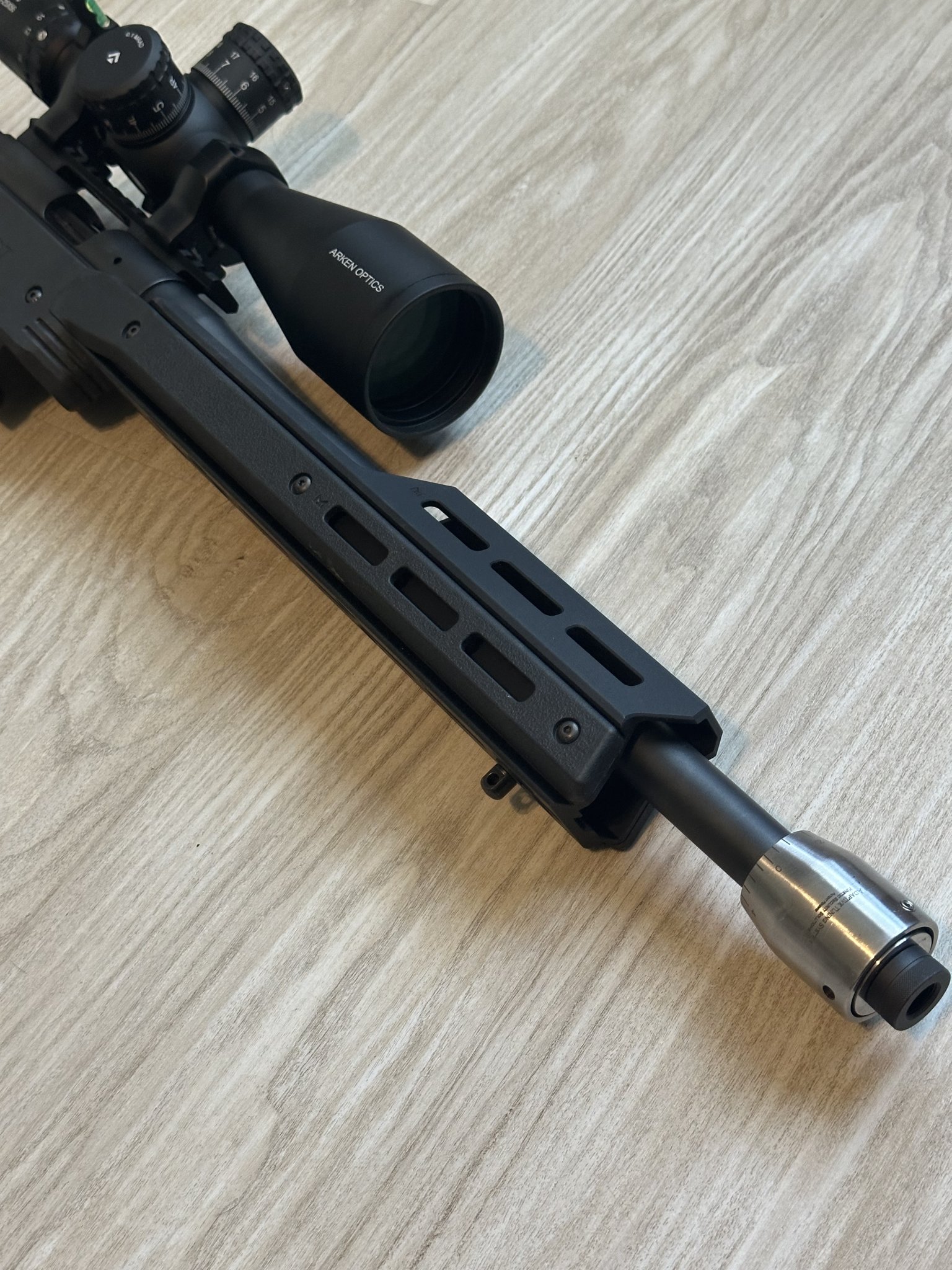 Bergara B14R .22LR, steel barrel, has around 500 rounds through it. 2 magazines total. Gun shoots very well, I shot a little center x and some others and it grouped nicely. Never dry fired. I believe it has a 30moa rail but will have to confirm.