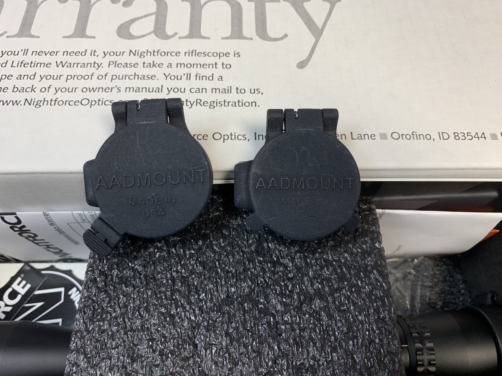 This scope is brand new in the box. Comes with a set of AADMOUNT caps.