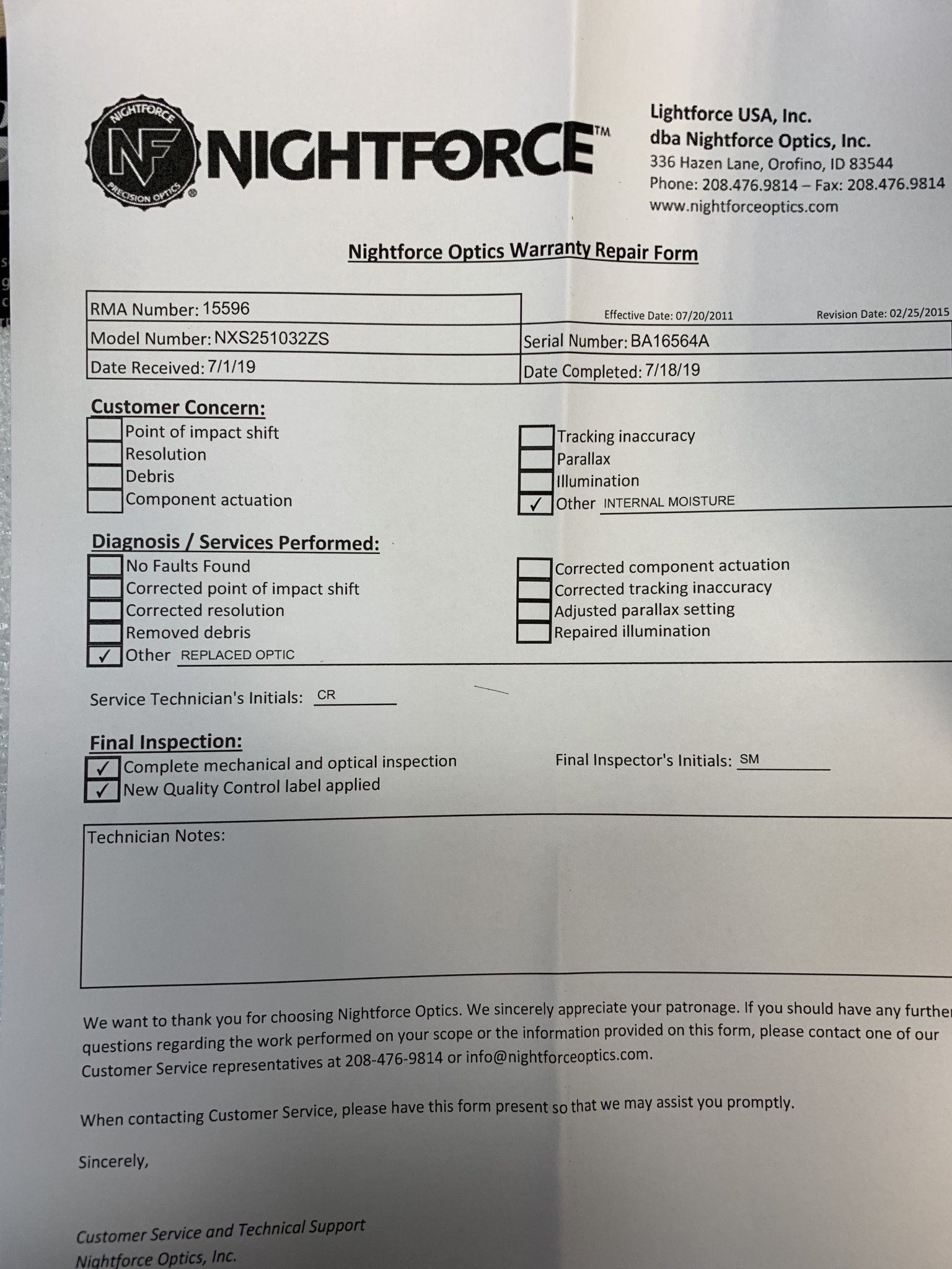 I sent my original back to NF with an internal moisture issue and they replaced it under warranty.
