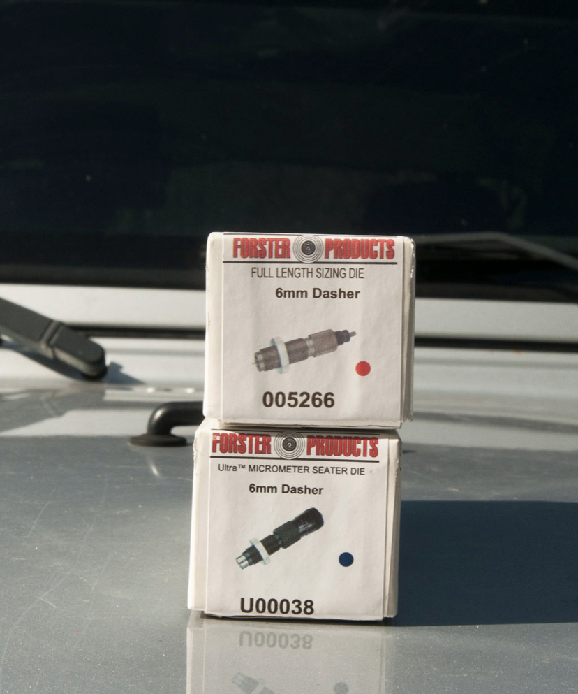 Also have a set of Forester Dies. A full length sizer and micro seater. Expander has been removed from sizer, but is in the box. Decap pin is not in the expander.