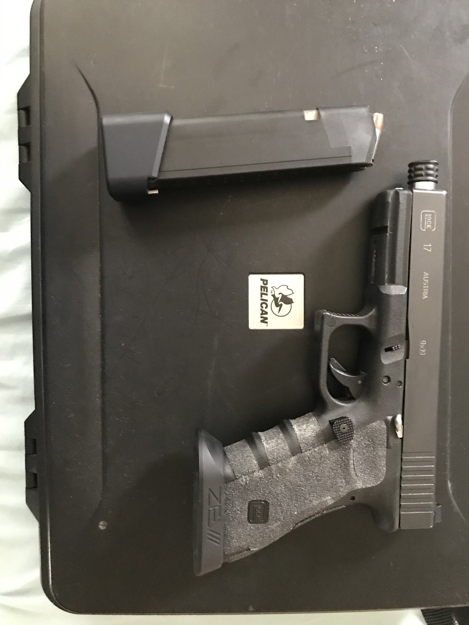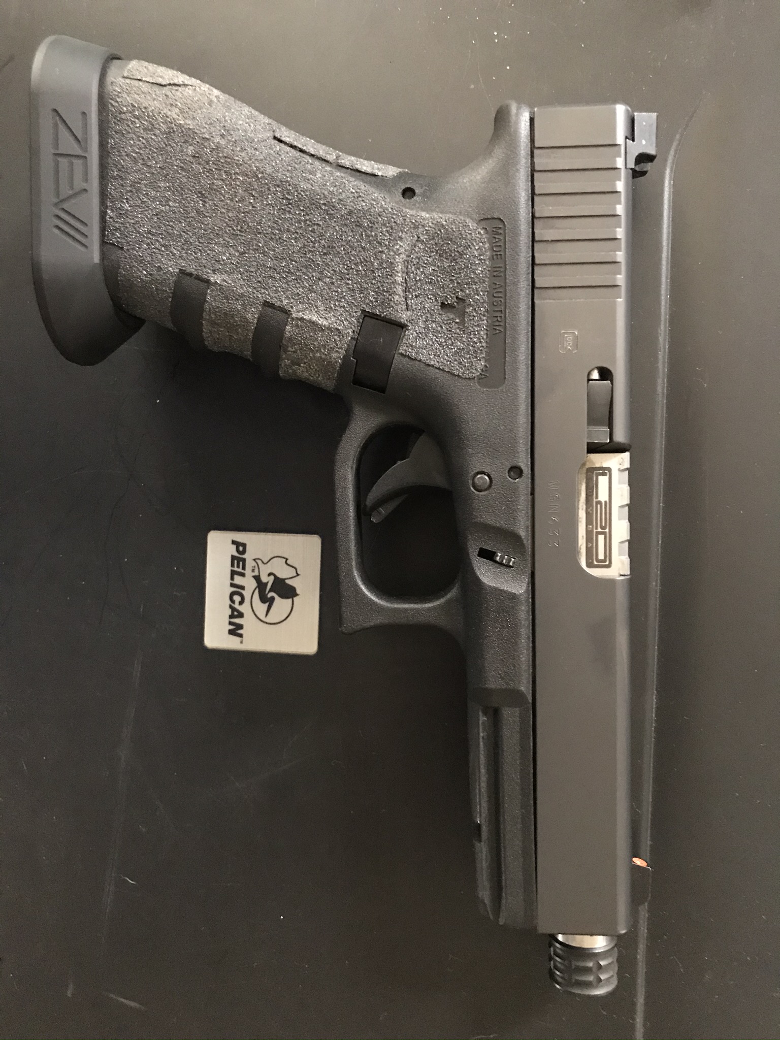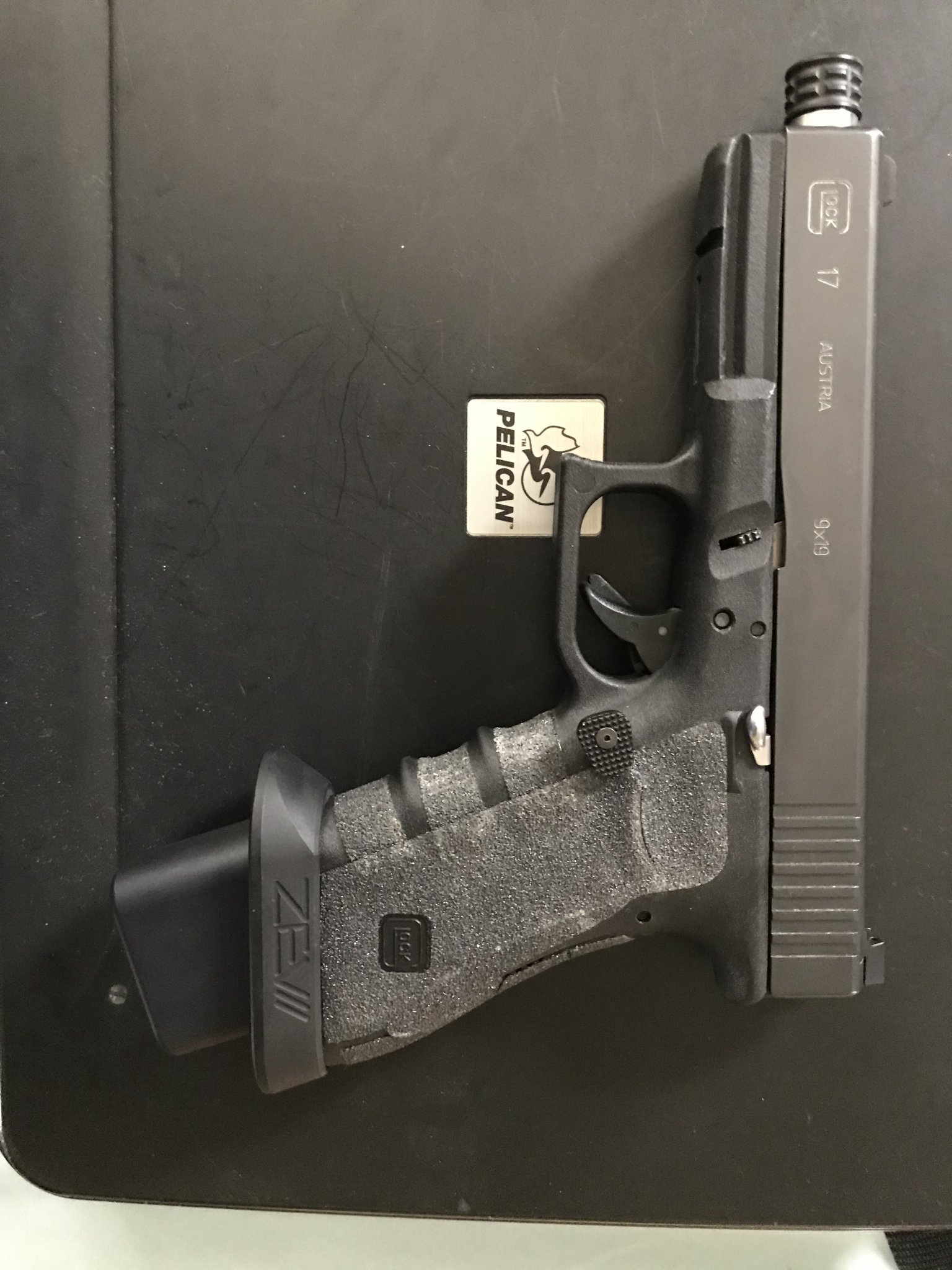 Glock Gen 3 G17, ghost minus connector, Zev magwell, L2D SS match threaded barrel, trijicon HD night sights, Zev extended magazine release, SS guide rod comes with one factory G17 magazine with a Taran Tactical +6 Base pad. Really low round count probably around 400 or so. Wasn’t carried ever just sat in the safe and made a few trips to the range.