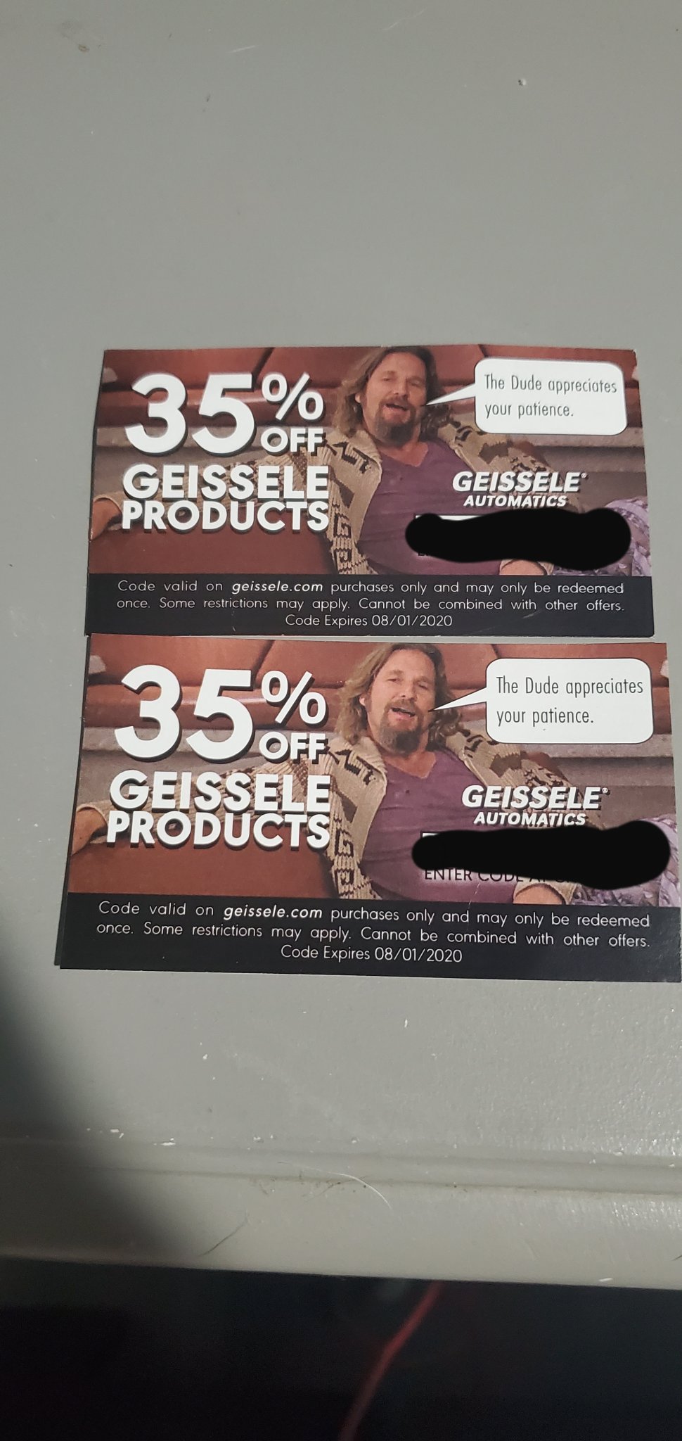 Finally got my black Friday sales in and have a couple of the Giessele 35% coupon codes they sent for being late on shipping