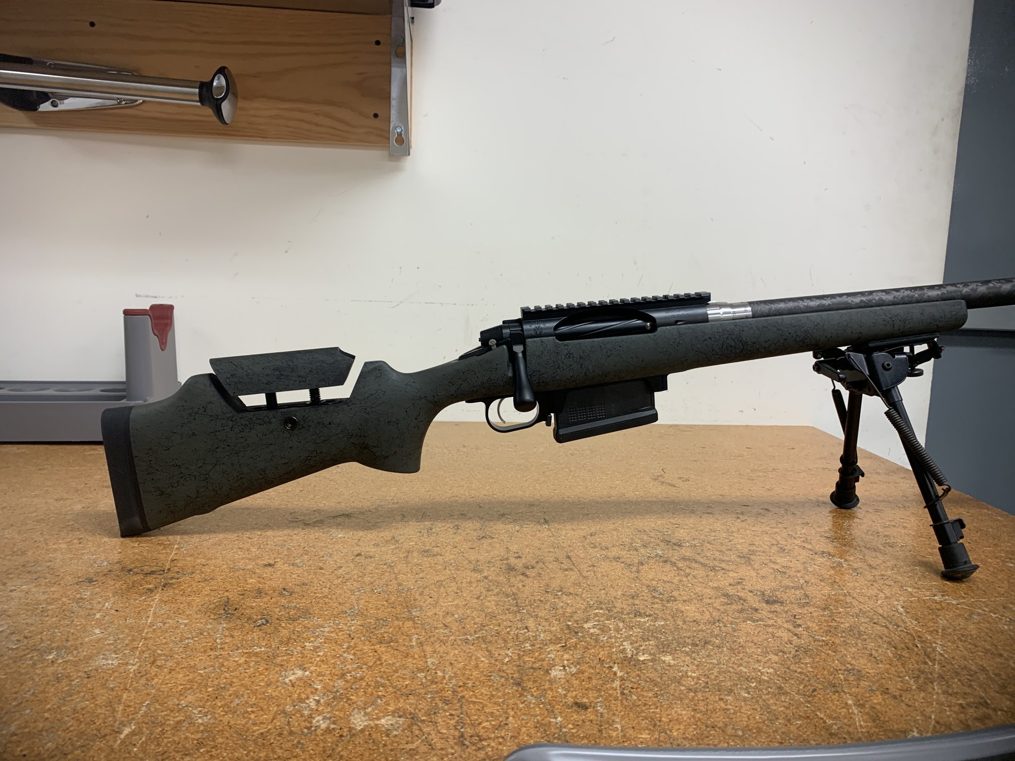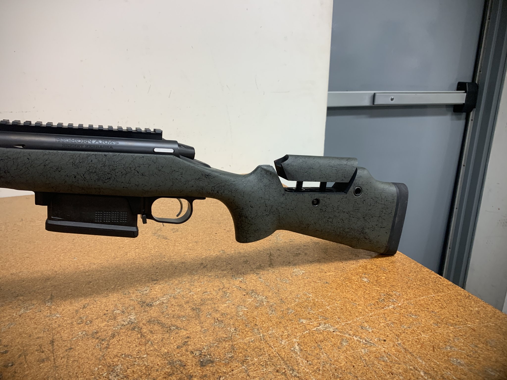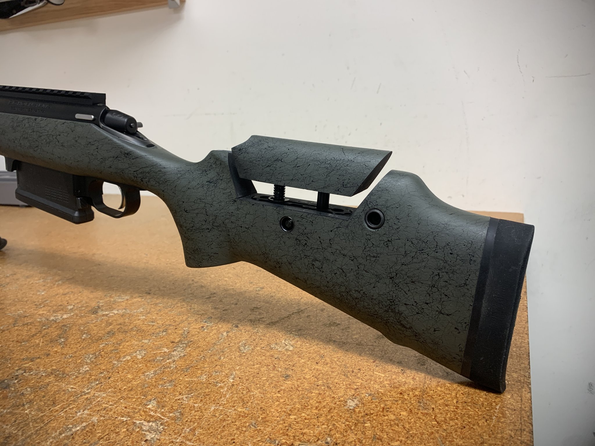Have a Grayboe Terrain Rem 700 LA stock in OD Green with Black Web, and custom adjustable cheek piece by Joe Ducos with KMW hardware. It’s been pillar and glass bedded for Bighorn SR3/TL3 Long Action by a local gunsmith. He also clearanced the stock a bit for the bolt handle and widened the ejection port to match the SR3. If you have a Bighorn LA it will drop right in and fit perfectly. Should fit most other 700 Clones well. I inletted the barrel channel myself for Proof Sendero/M24 contour barrel. Comes with Hawkins M5 DBM. Does not come with action screws.
