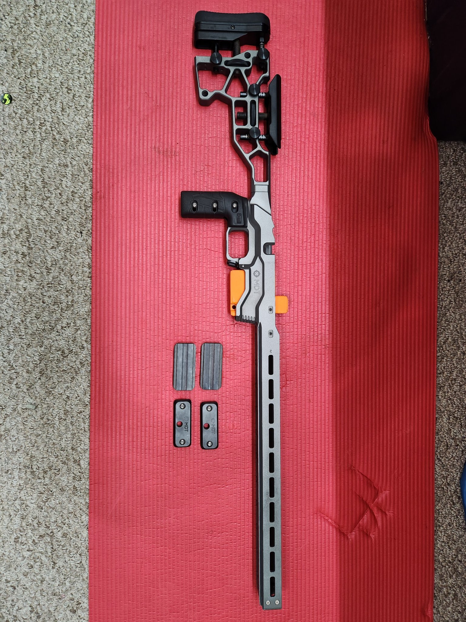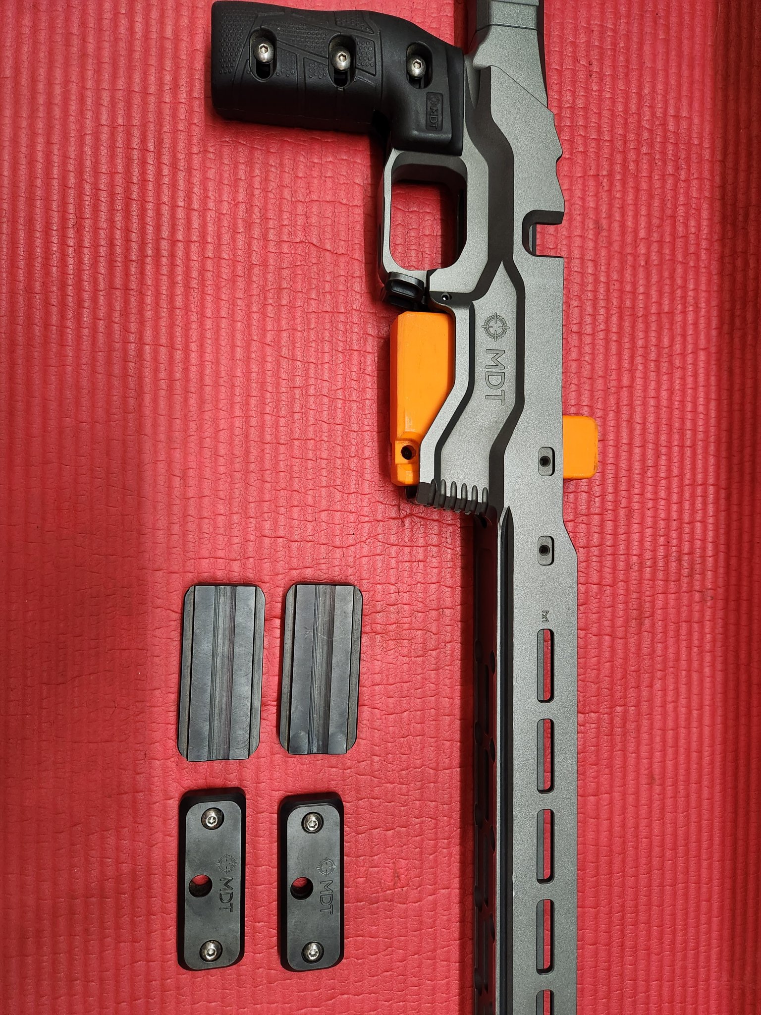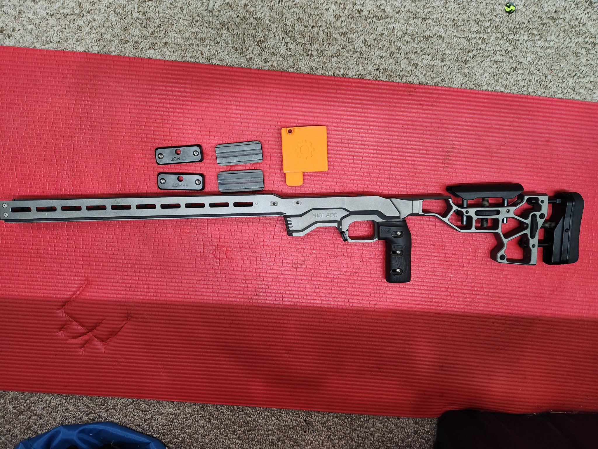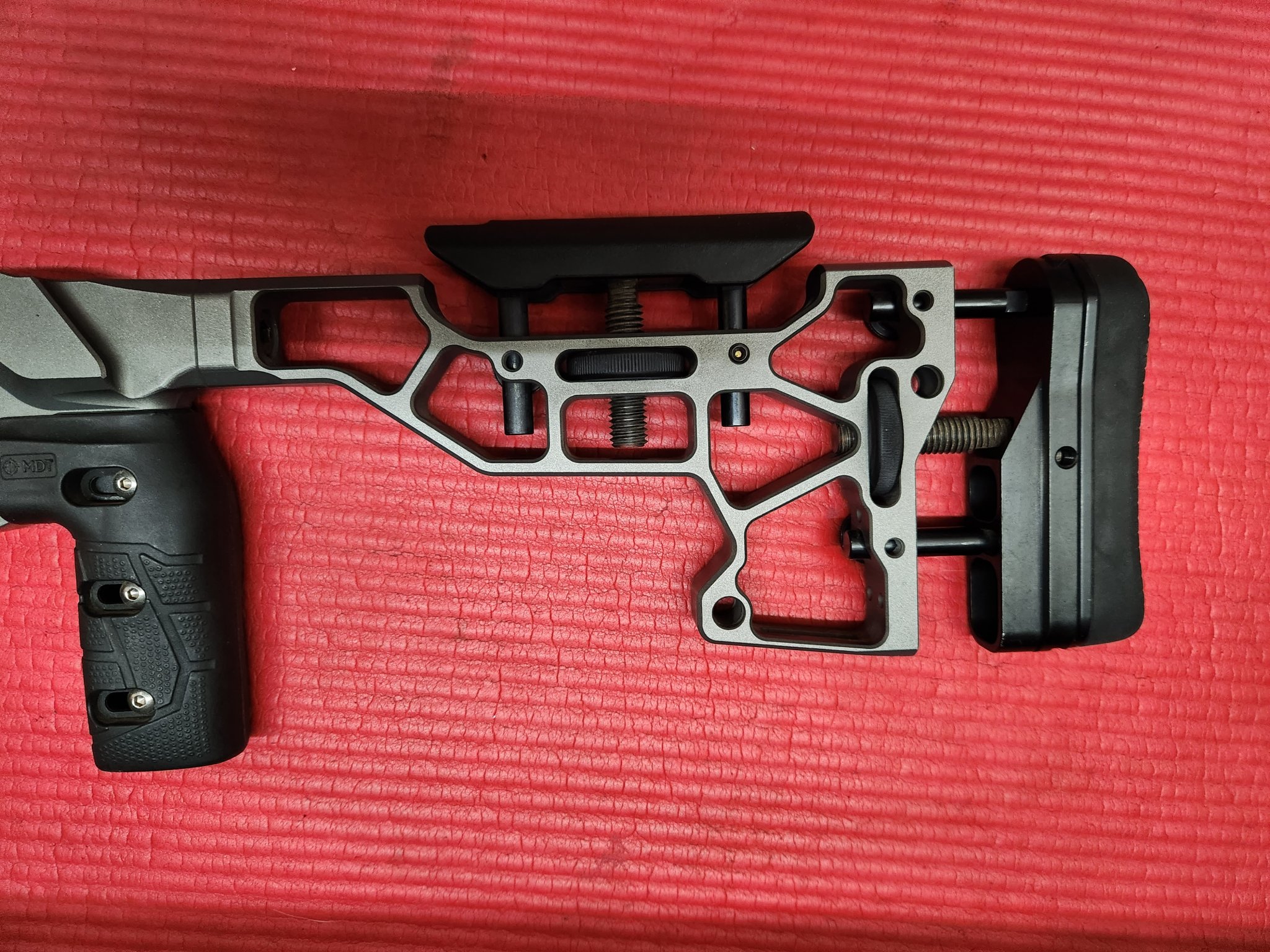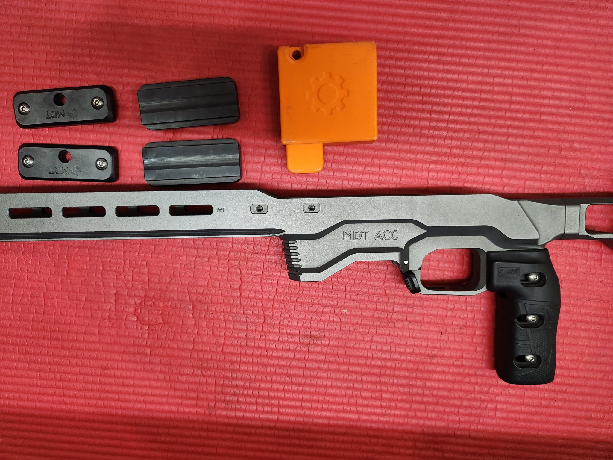 Used MDT ACC for Rem 700 SA footprint. Including 2 weight sets (2 internal and 2 external weights) along with a mag well safety device. New with weights this is a $1,875.00 value.