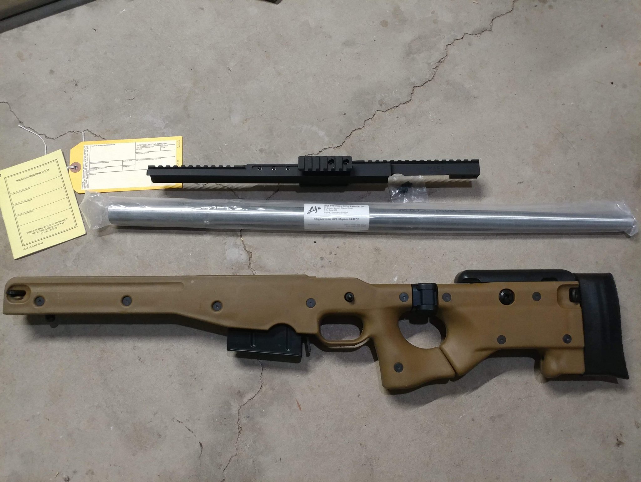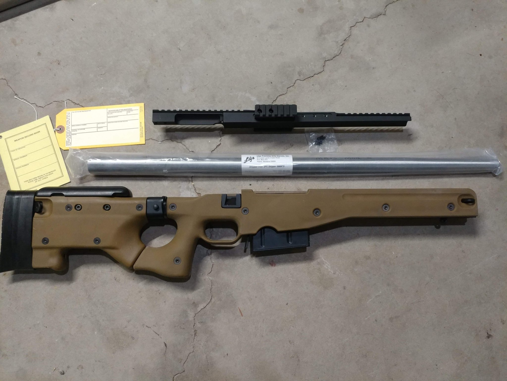 Long action AICS 2.0, 20 MOA Remington MARS rail, Lilja Mk13 Mod 5 barrel, Crane logbook and condition code tag.